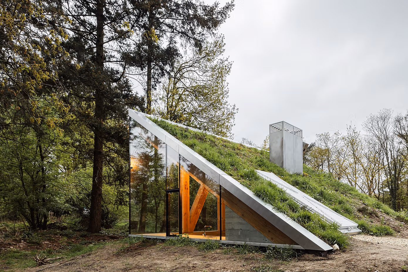 W samym sercu Veluwe w Holandii, studio JCR Architecten stworzyło niezwykły projekt – Kazemat Koningsweg, czyli mały dom wakacyjny, który niemal całkowicie stapia się z otoczeniem. Budynek powstał na terenie dawnego kompleksu wojskowego, dziś przekształconego w przestrzeń łączącą funkcje mieszkalne, rekreacyjne i pracownicze. Wśród drzew i traw ukryto jedenaście niewielkich domów, a Kazemat Koningsweg stanowi jeden z najbardziej wyrazistych przykładów tej nowej, kameralnej architektury.