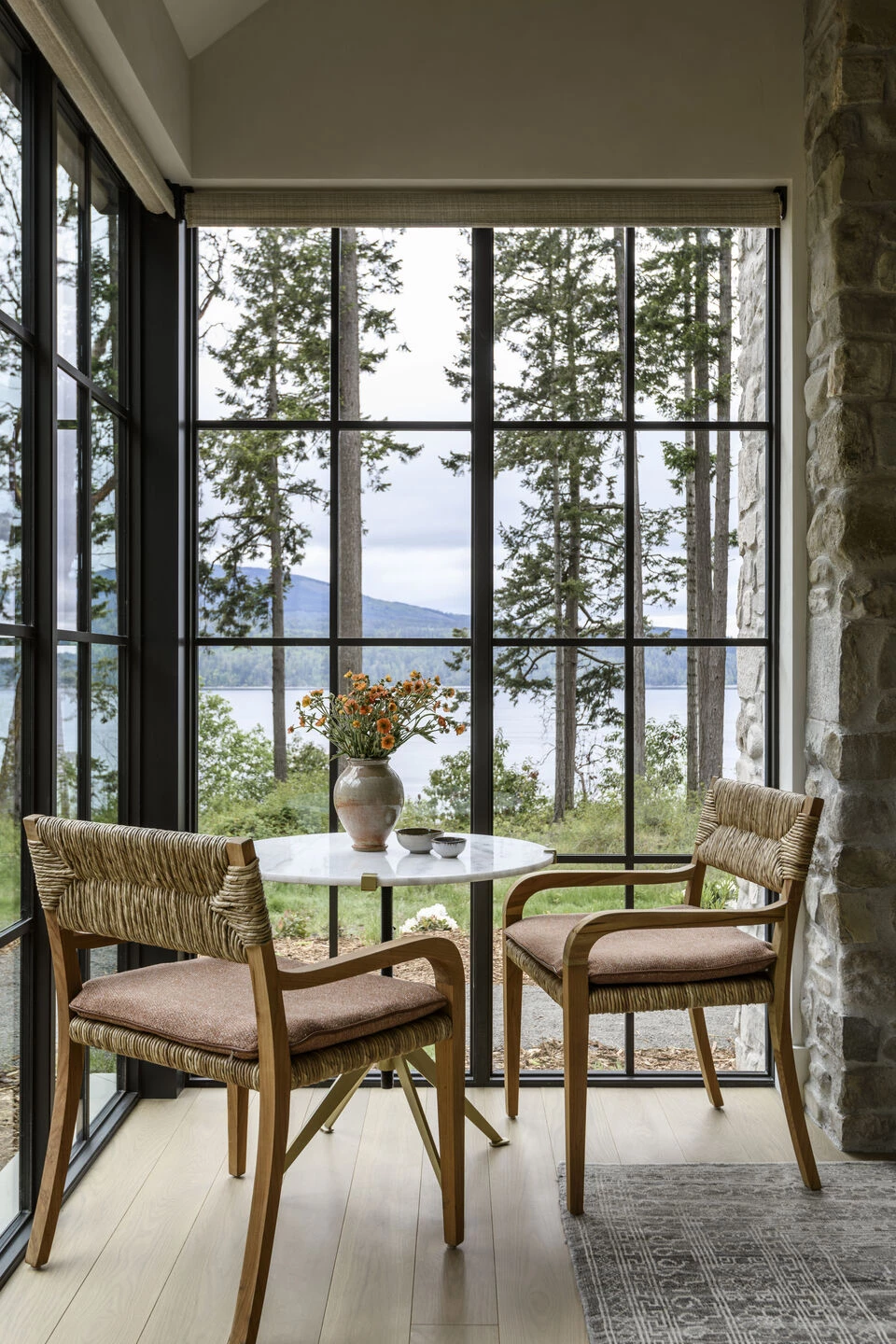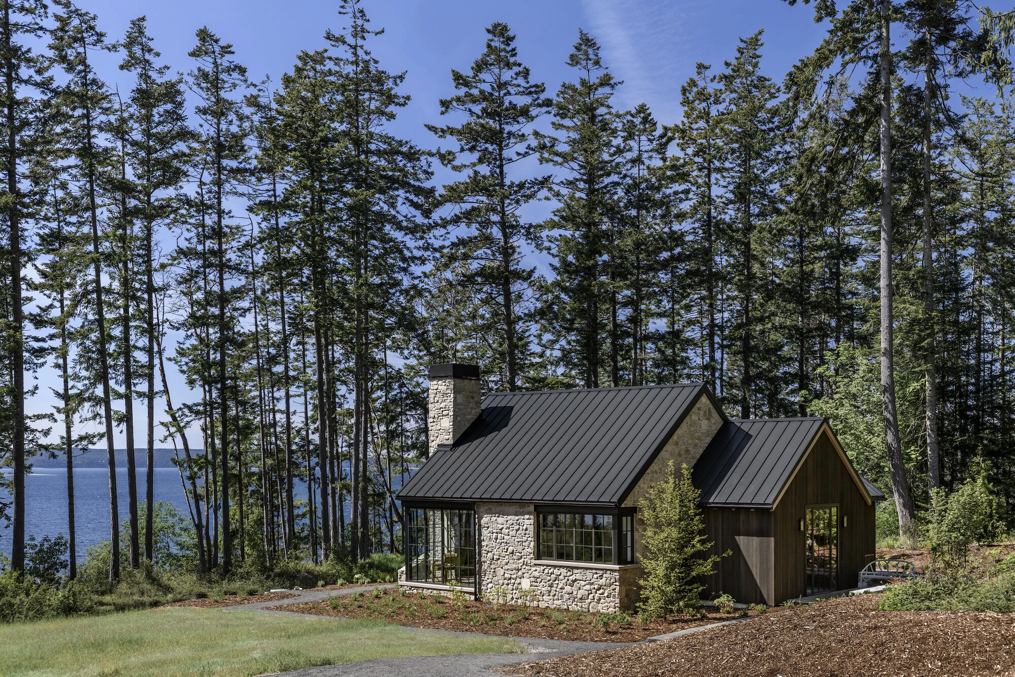 Keystone Cottage to niezwykły domek ukryty w spokojnym, zalesionym otoczeniu niedaleko Port Townsend w stanie Waszyngton. Jego położenie zapewnia zapierające dech w piersiach, zachodnie widoki na Puget Sound. Projekt powstał z myślą o stworzeniu miejsca, które będzie jednocześnie zakorzenione w krajobrazie i ponadczasowe w formie.