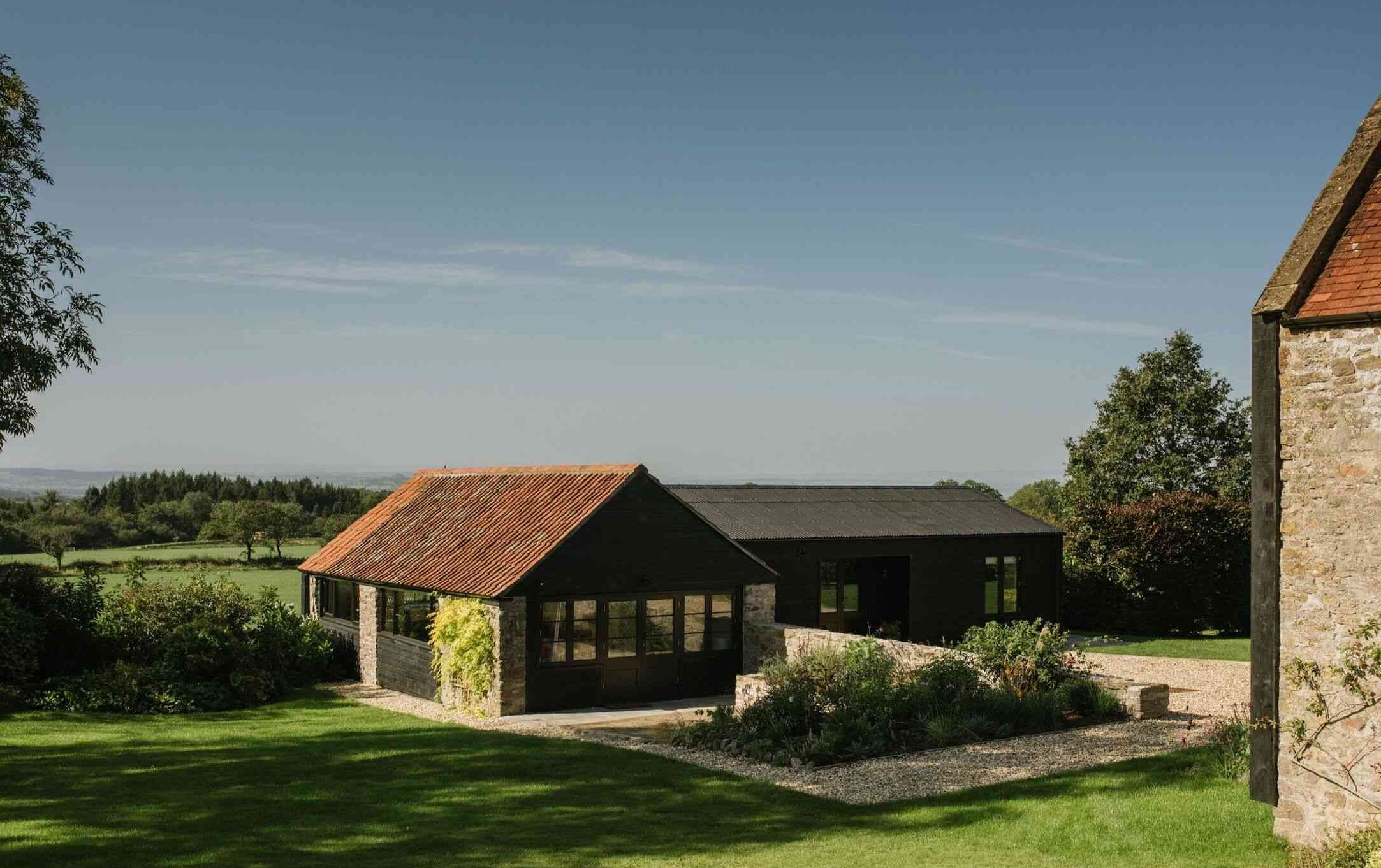 Na skraju malowniczego masywu wzgórz Mendip w Wielkiej Brytanii znajduje się wyjątkowa nieruchomość Kilnwood, której rewitalizację powierzono londyńskiej pracowni De Rosee Sa. Architekci zadbali o to, by odnowiony budynek i nowe elementy zachowały spójność architektoniczną, nawiązując do lokalnej architektury wiejskiej – czarnych, drewnianych elewacji i klasycznych, dwuspadowych dachów. Dawna stodoła została przekształcona w nowoczesną stodołę, w której tradycyjne formy spotykają się z nowoczesnymi rozwiązaniami. Imponujące wejście, nowy przedsionek oraz przestronny hall ze schodami w głębokim odcieniu zieleni tworzą serce domu i wprowadzają do wnętrza harmonię oraz symetrię. Naturalne kolory drewna i ziemiste barwy podkreślają związek rezydencji z jej sielskim otoczeniem.