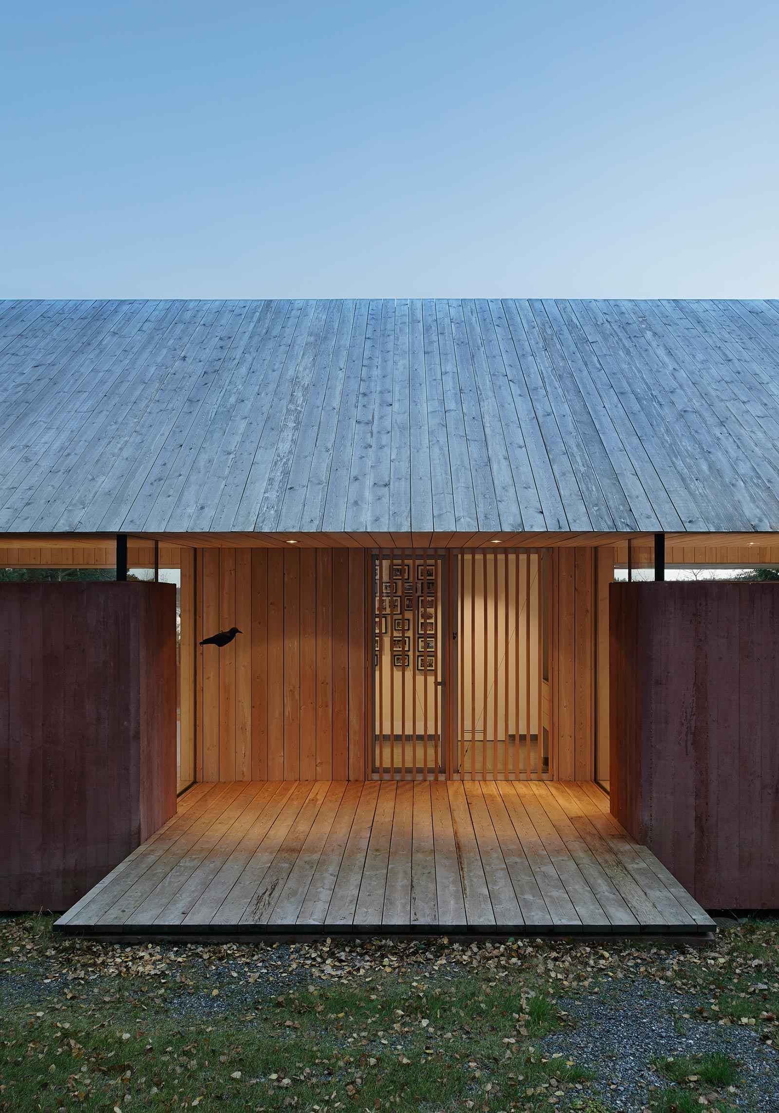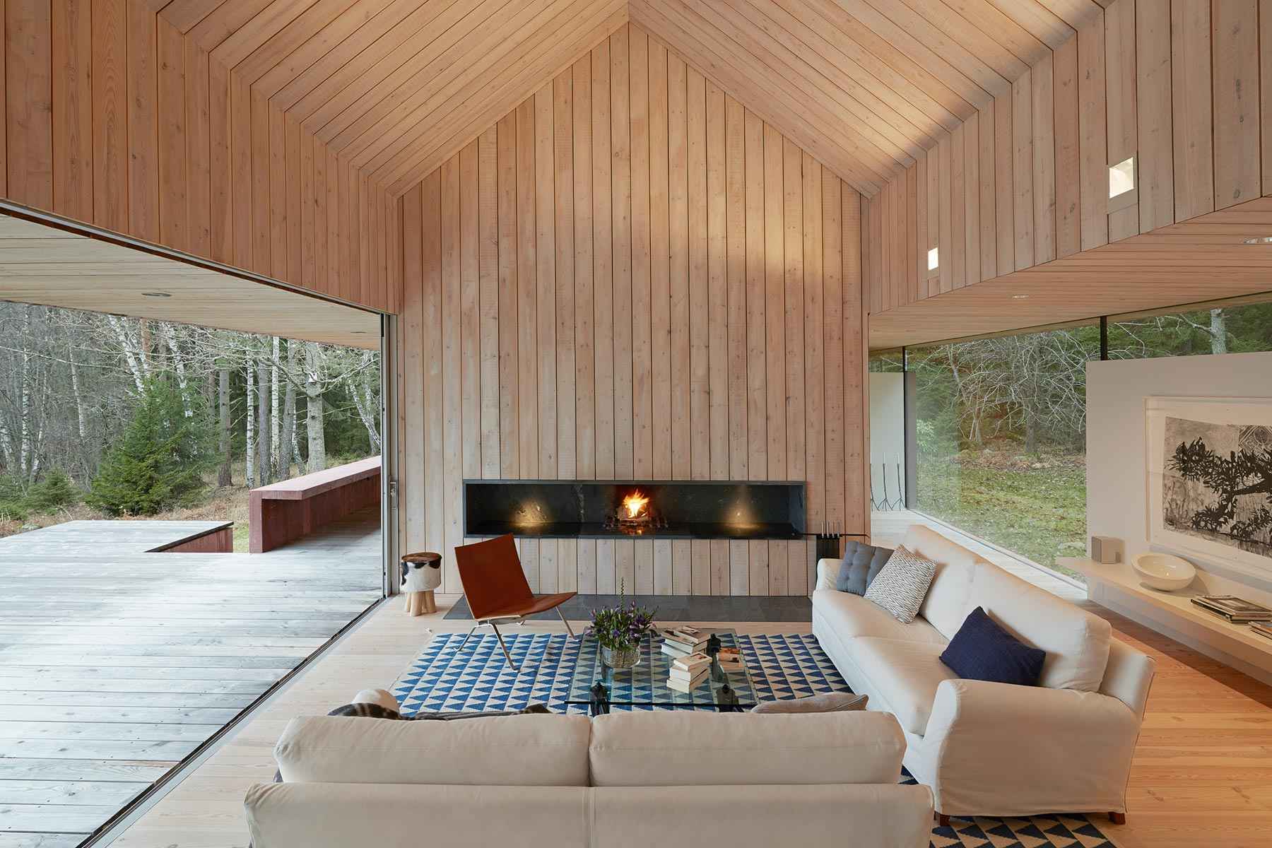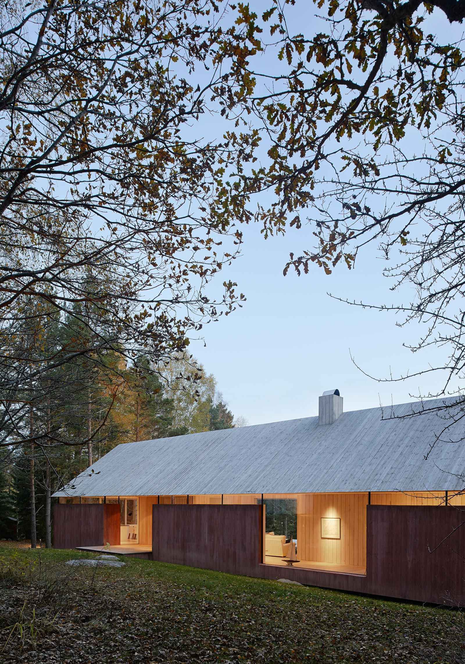 Architekci zachowali istniejący szkielet budynku, nadając mu jednak zupełnie nowy charakter poprzez świadome połączenie tradycji i współczesnych rozwiązań. Zastosowanie klasycznego koloru „Falu Red” podkreśliło tożsamość projektu i nadało bryle wyrazistości, siły oraz autentyczności. Dzięki temu dom zyskał ponadczasową estetykę, balansując pomiędzy historycznym dziedzictwem a nowoczesnym podejściem do projektowania domów letniskowych w Skandynawii.