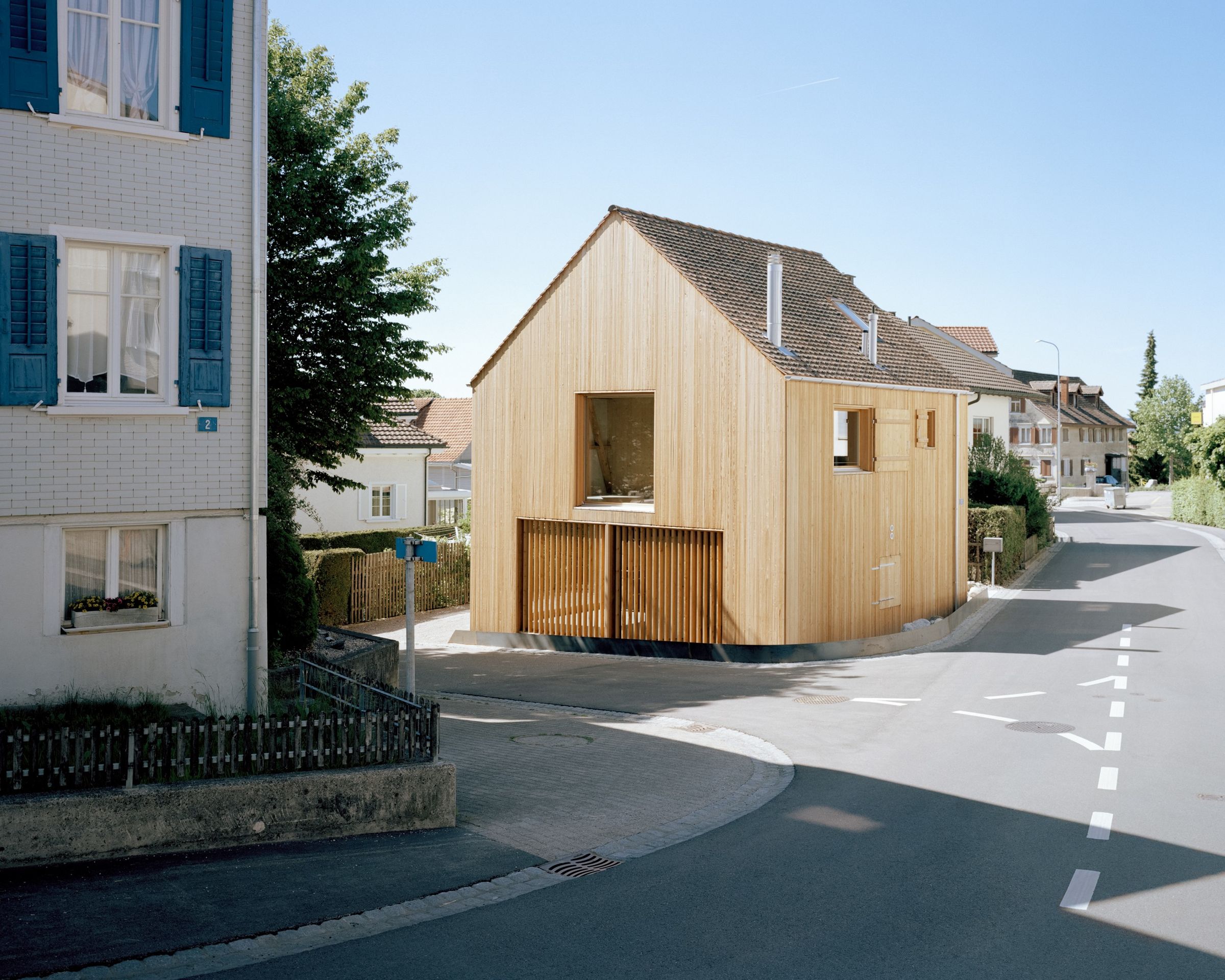 Pośrodku wsi Jonschwil w regionie Alttoggenburg w Szwajcarii stała stara, drewniana wozownia. Dawniej znana jako „Schilte Siebni”, nawiązywała do lokalnego zwyczaju oznaczania najbardziej nieregularnie usytuowanych budynków na terenie wsi. Dziś, na rzucie kwadratu o wymiarach 6 x 6 metrów, stoi tu Kleines Haus – nowoczesny, zrównoważony i niezwykle funkcjonalny mały dom drewniany o powierzchni mieszkalnej niespełna 99 m². Ten kompaktowy budynek to doskonały przykład na to, jak może wyglądać nowoczesna stodoła w wersji minimalistycznej.