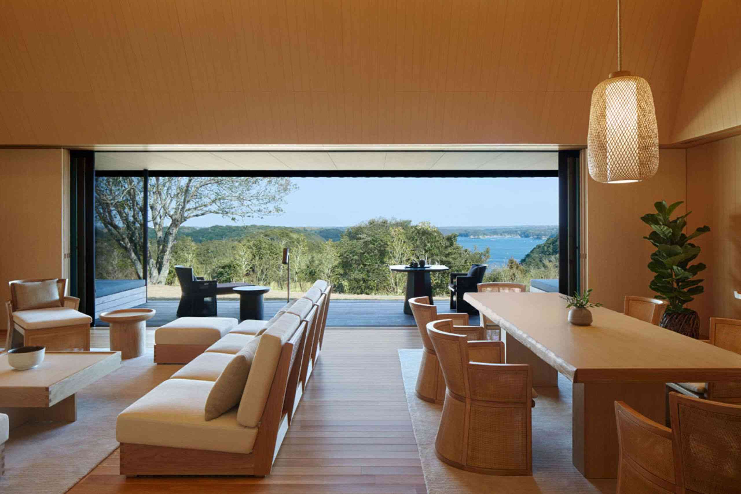 Wszystkie meble – od sof po stoliki z białego dębu – zostały wykonane na zamówienie, aby idealnie współgrać z estetyką miejsca. Goście mogą korzystać z restauracji w stylu izakaya, gdzie serwowane są lokalne potrawy, oraz ze strefy spa onsen, w której wykorzystywana jest woda z naturalnych gorących źródeł. Na terenie kompleksu znajduje się także 33-metrowy basen infinity, oferujący zapierające dech w piersiach widoki na zatokę Ago. Amanemu to połączenie luksusu, tradycji i filozofii zen – idealne dla tych, którzy pragną odpoczynku w zgodzie z naturą.