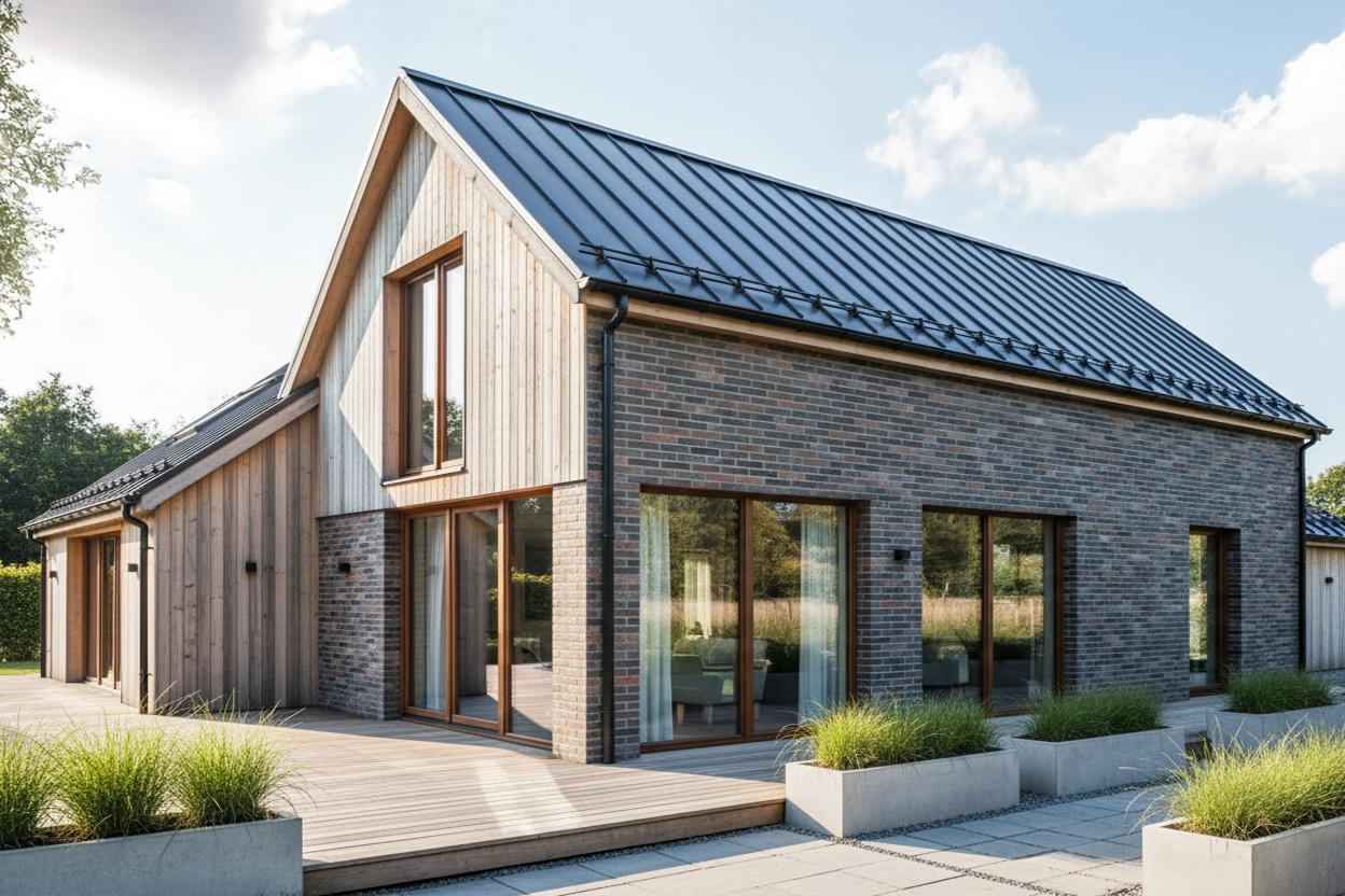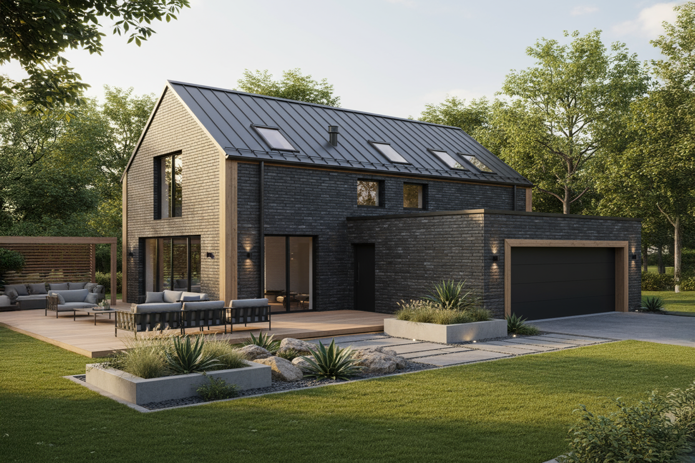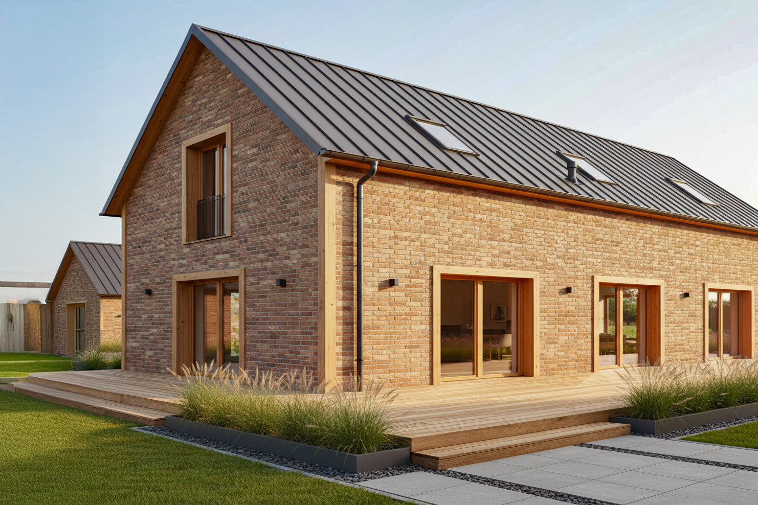 Szczególnie popularne stają się elewacje dwumateriałowe, które pozwalają na wyrażenie indywidualizmu architektonicznego. Połączenie cegły i drewna to klasyczny duet, który w przypadku płytek ceglanych typu long i rustykalnych desek elewacyjnych zyskuje zupełnie nowy wymiar.
