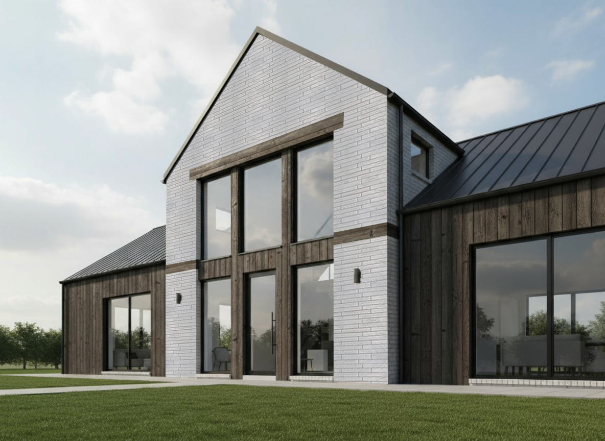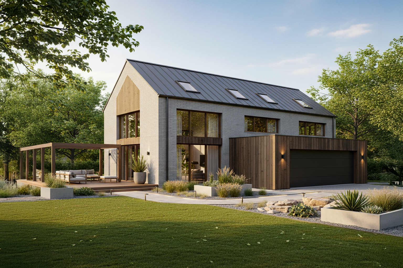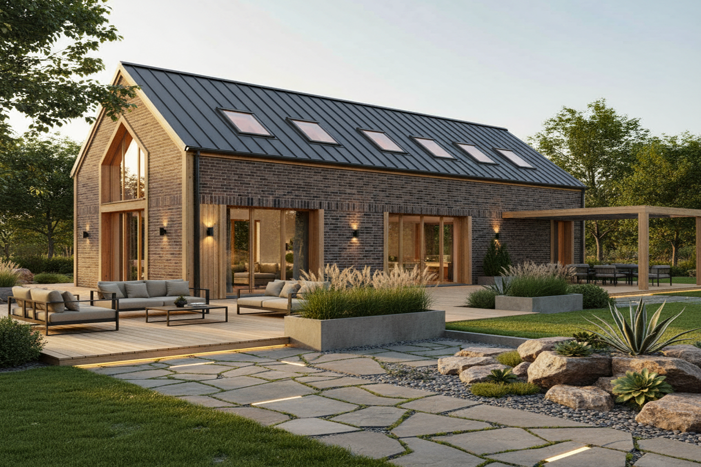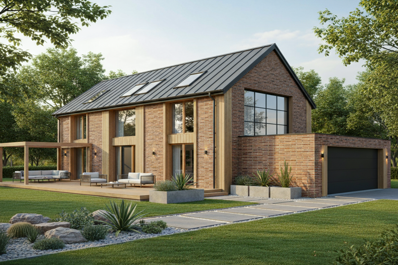 Szczególnie popularne stają się elewacje dwumateriałowe, które pozwalają na wyrażenie indywidualizmu architektonicznego. Połączenie cegły i drewna to klasyczny duet, który w przypadku płytek ceglanych typu long i rustykalnych desek elewacyjnych zyskuje zupełnie nowy wymiar.