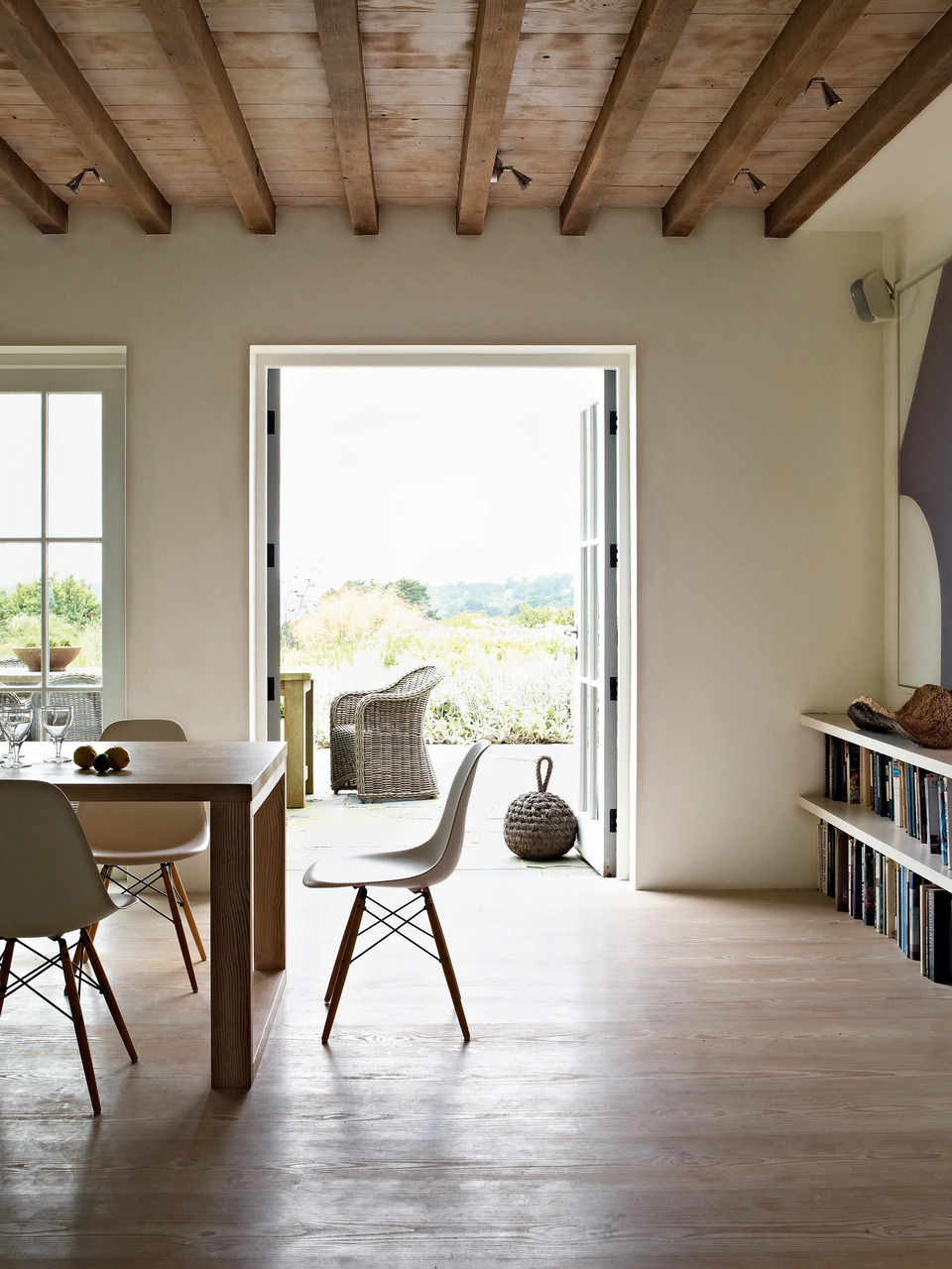 Ten kamienny dom, położony w jednym z najbardziej malowniczych obszarów Kornwalii, został zaprojektowany z myślą o podkreśleniu wyjątkowego charakteru krajobrazu i stworzeniu przestrzeni, która łączy nowoczesny styl z tradycyjną kornwalijską konstrukcją. Początkowo właściciele planowali postawić nowoczesny dom, ale finalnie zdecydowali się na bardziej tradycyjny projekt, który miał harmonizować z otaczającą przyrodą. Marion Lichtig, projektantka wnętrz, współpracowała z architektem Duncanem Mackenzie z Mackenzie Wheeler, aby stworzyć przestrzeń, która uchwyci nastrojowe światło nadmorskiego i wiejskiego klimatu. Kamień lokalny użyty do budowy domu pochodził z pobliskiej farmy, a stary łupek, wykorzystany do wykonania podłogi, pochodził z okolicznych składowisk rekultywacyjnych, co sprawia, że dom staje się integralną częścią krajobrazu.