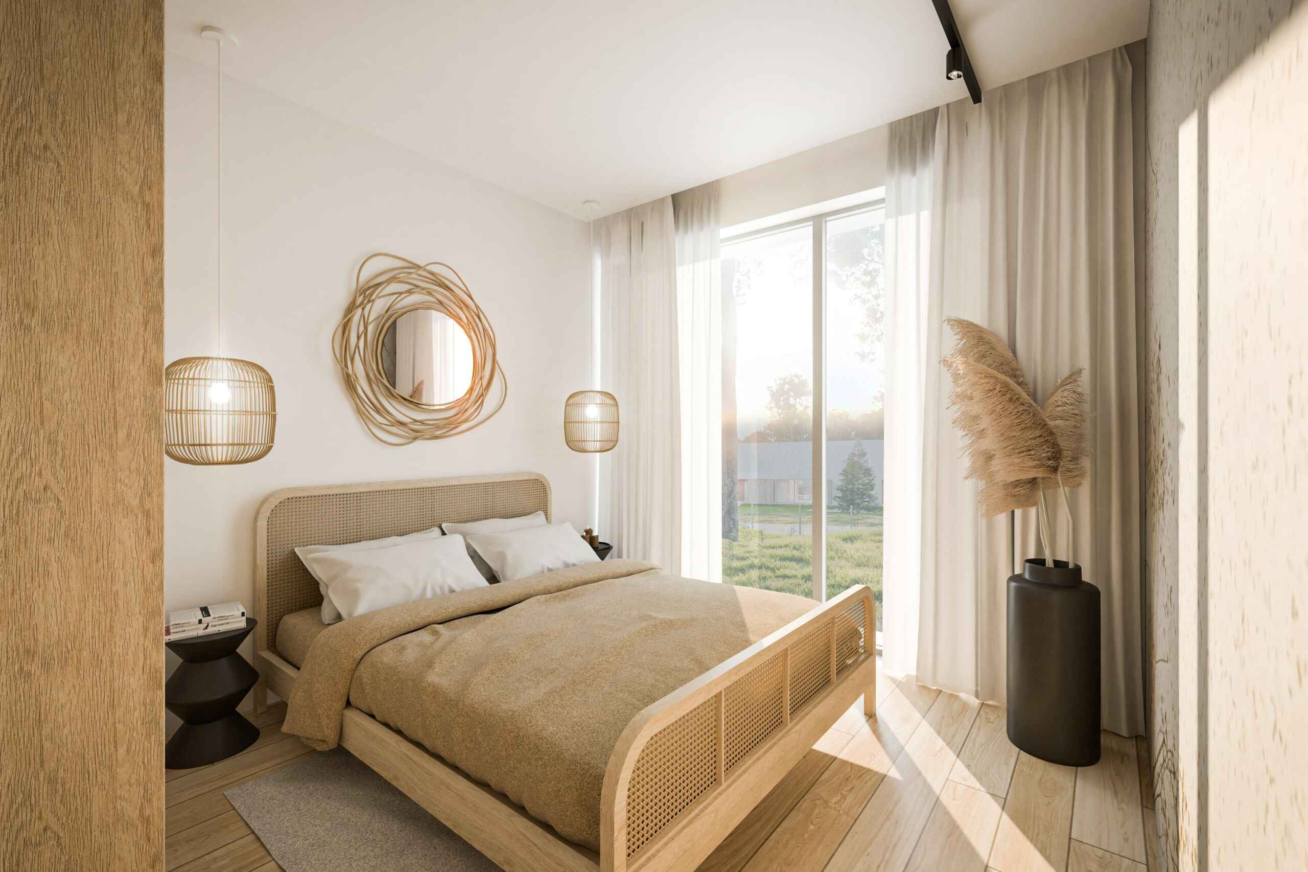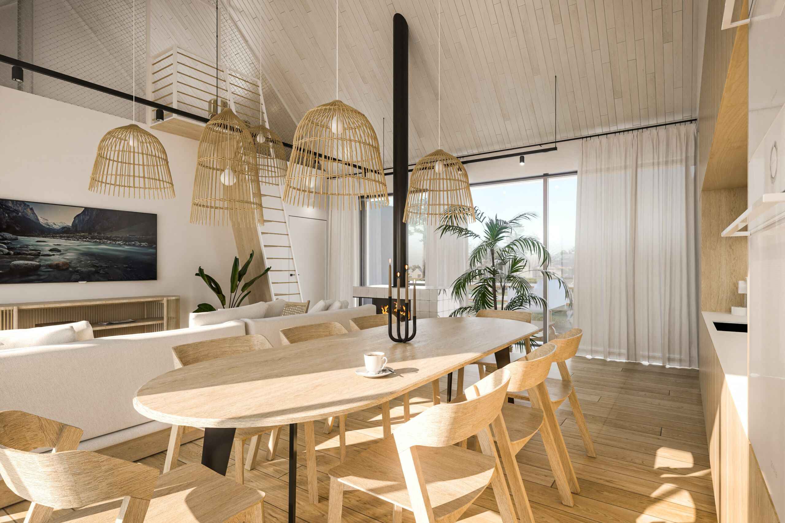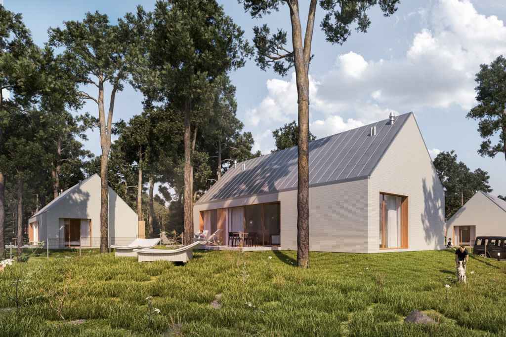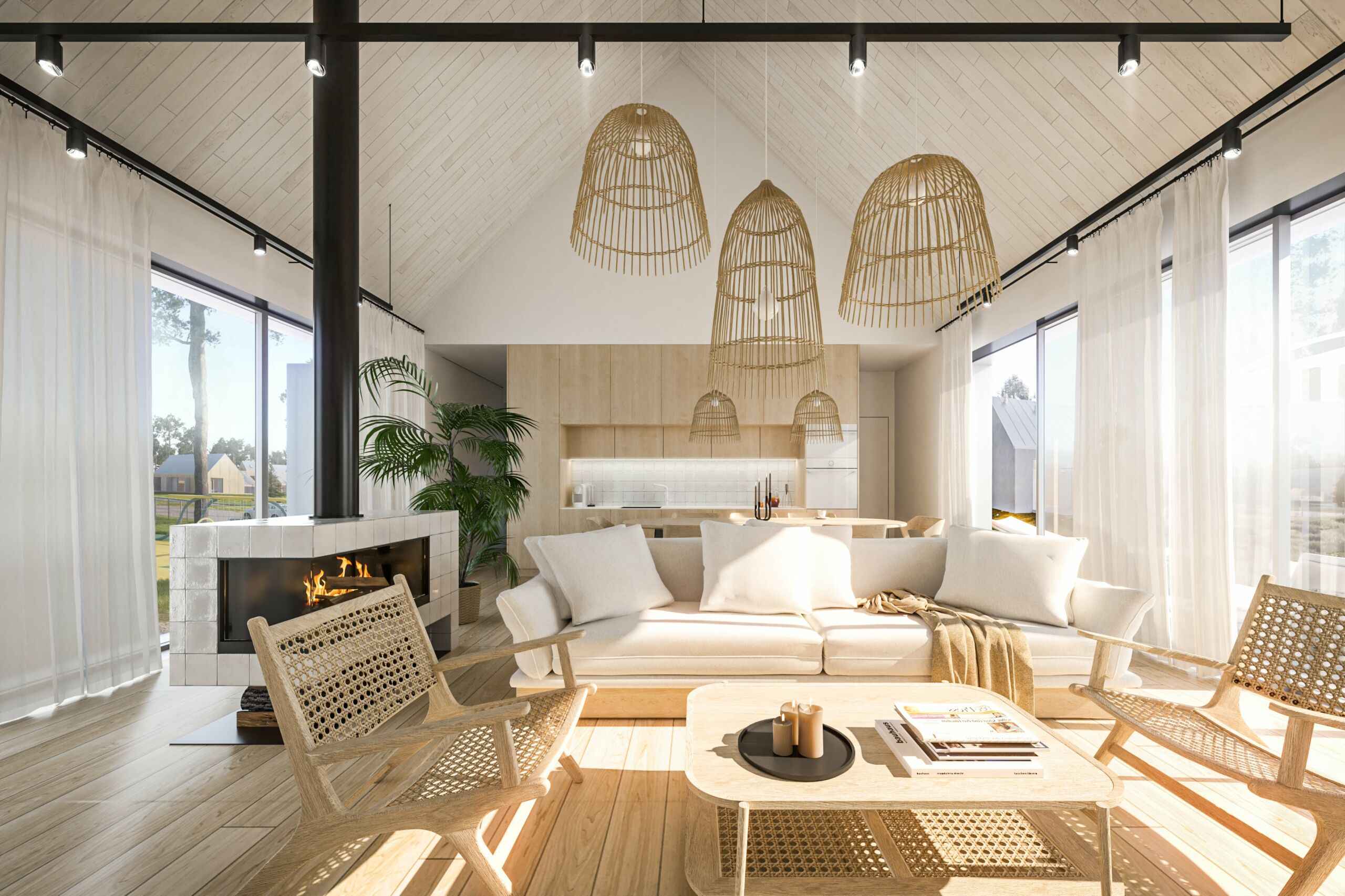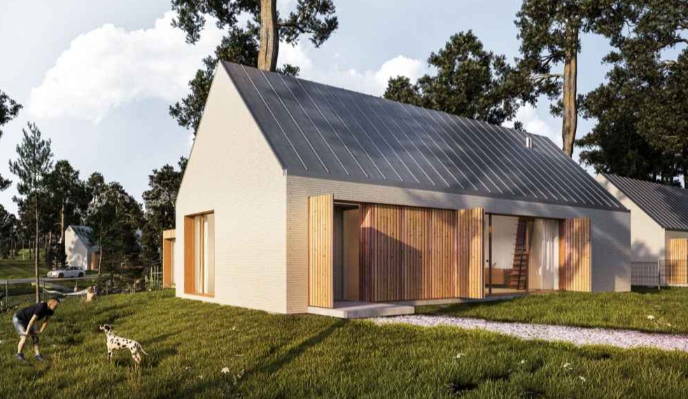 Domy w projekcie Kownatki zaprojektowano w duchu współczesnej prostoty, inspirowane formą tradycyjnej stodoły. Budynki wzniesiono na planie prostokąta, z dwuspadowym dachem, dużymi przeszkleniami i naturalnymi materiałami elewacyjnymi – drewnem, cegłą i betonem. Konstrukcja murowana zapewnia trwałość, a zastosowanie nowoczesnych technologii (przesuwne drzwi, kominek, żaluzje drewniane, podłogi z litego drewna i żywicy) gwarantuje komfort użytkowania przez cały rok. Każdy z domów został zaprojektowany z myślą o integracji z otoczeniem – z każdego pomieszczenia na parterze można wyjść bezpośrednio na ogród lub taras. Salon z antresolą i wysokim sufitem tworzy centralne miejsce wspólnych chwil, a nowoczesna stodoła zyskuje unikalny charakter dzięki odsłoniętej płycie fundamentowej z surowego betonu w strefie wejściowej.