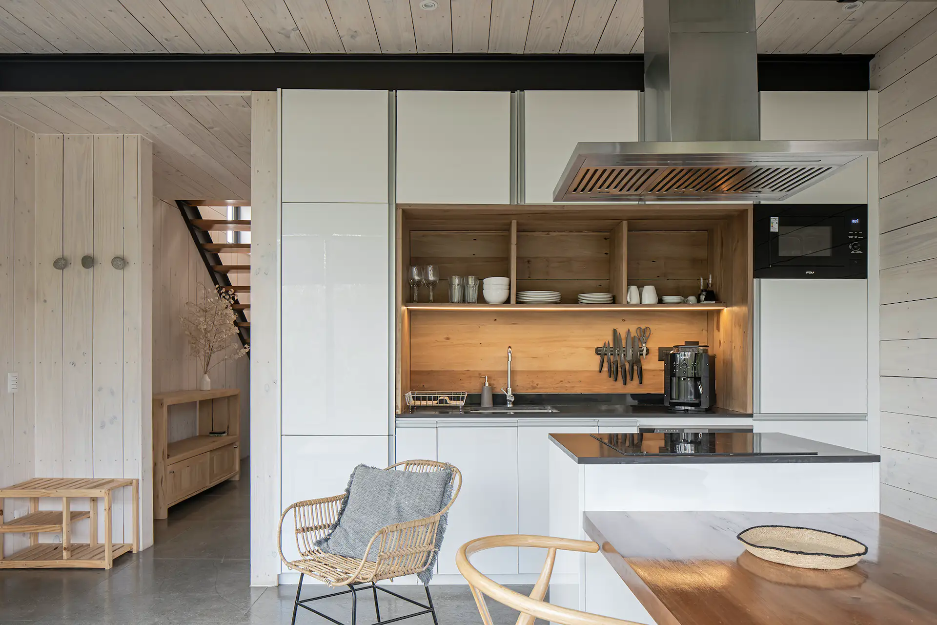 Goście Foráneo mogą cieszyć się wygodnym pobytem w kabinach, które oferują nowoczesne udogodnienia, ale także przestrzeń do obcowania z naturą. Szerokie okna i tarasy umożliwiają podziwianie malowniczych widoków na rzekę Maullín i okoliczny las. Pomimo swojej nowoczesnej konstrukcji, domki posiadają ciepły, przyjazny charakter dzięki drewnianym wykończeniom i naturalnym materiałom. Gabriel i Pamela dbają o to, by ich goście czuli się komfortowo i jednocześnie zbliżali do natury, korzystając z produktów pochodzących z lokalnych upraw i promując zrównoważoną turystykę.