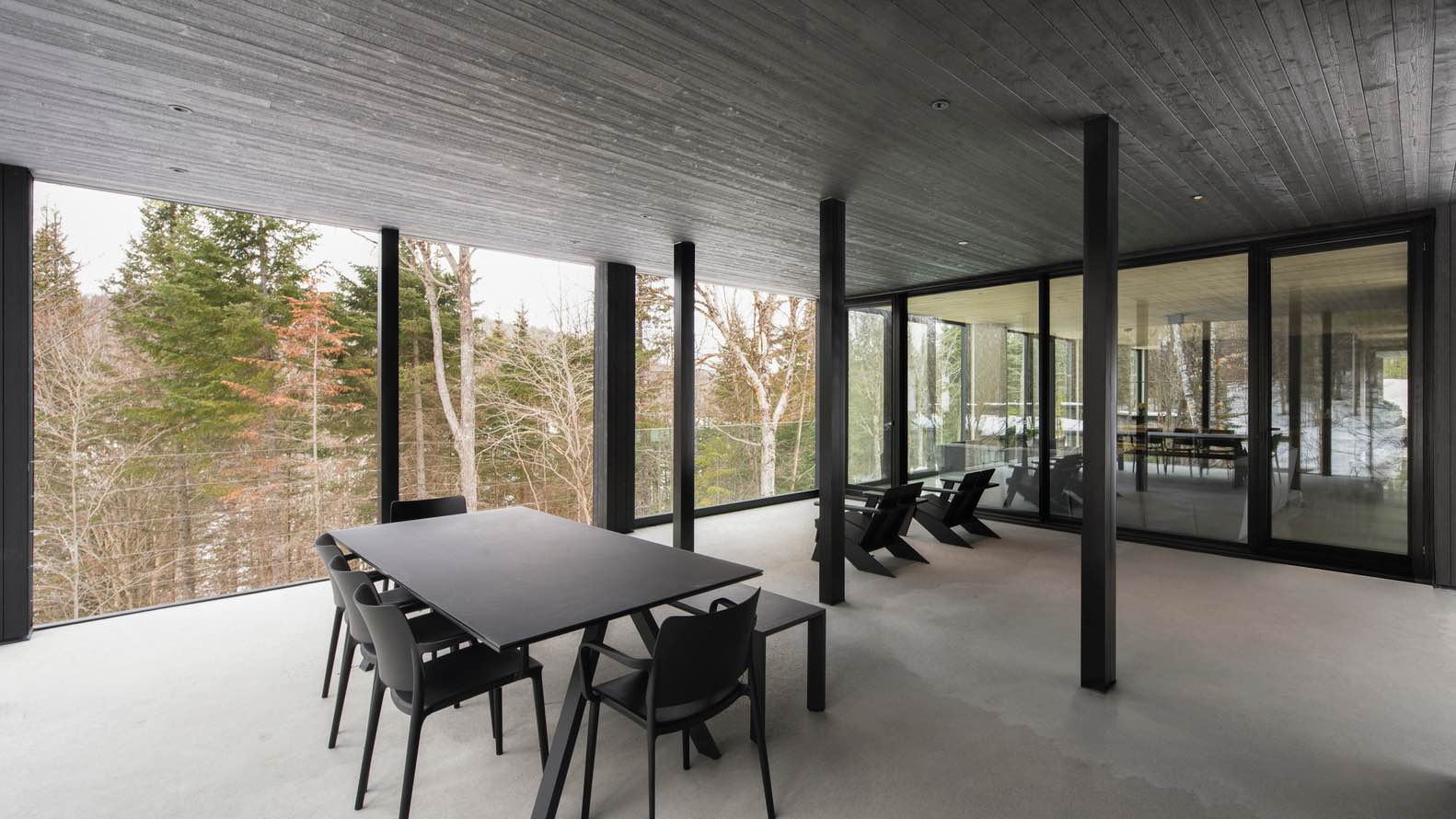 Budynek o powierzchni 534 m² został zaprojektowany dla rodziny pragnącej „wyłączyć się” z codziennego życia i zanurzyć w naturze — architektura ma cofać się wobec krajobrazu, a nie dominować go.