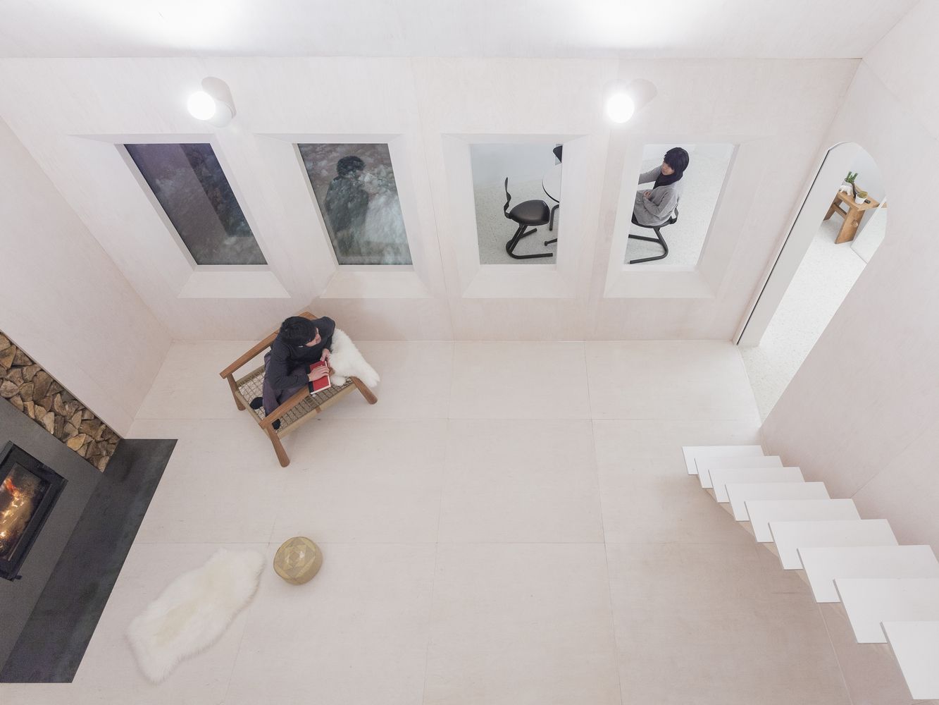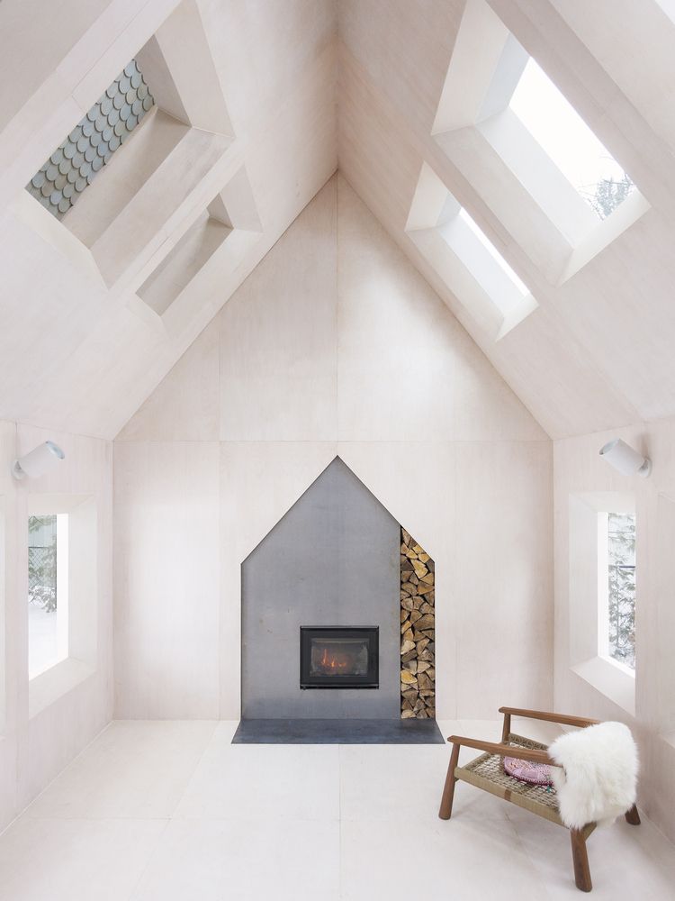 Lake Cottage to wyjątkowy dwupoziomowy domek w kanadyjskim lesie nad jeziorem Kawartha Lakes, pośród brzoz i świerków, będący interpretacją domku na drzewie i harmonijną częścią przyrody. Konstrukcja o wysokości 7 metrów w kształcie litery „A” z czarnym, spadzistym dachem kryje wielofunkcyjne przestrzenie, które mogą pomieścić sporą rodzinę. Zadaszony taras z lustrami i głębokie wnęki tworzą efekt integracji wnętrza z lasem, a abstrakcyjny charakter salonu z 14 otworami na drzewa i niebo oraz surowe wykończenia materiałów podkreślają bliskość natury i minimalistyczny charakter domu, przypominający nowoczesną stodołę.