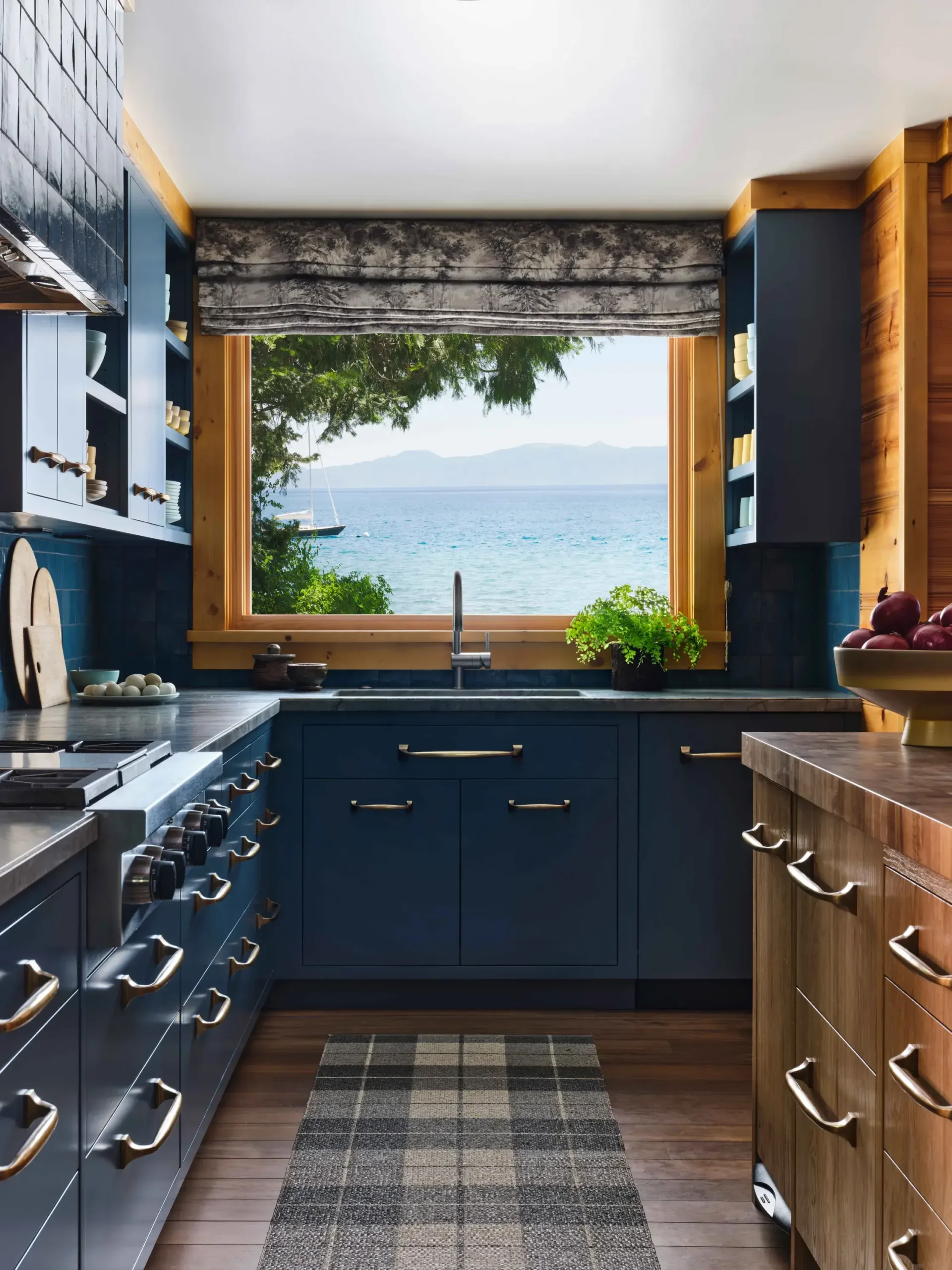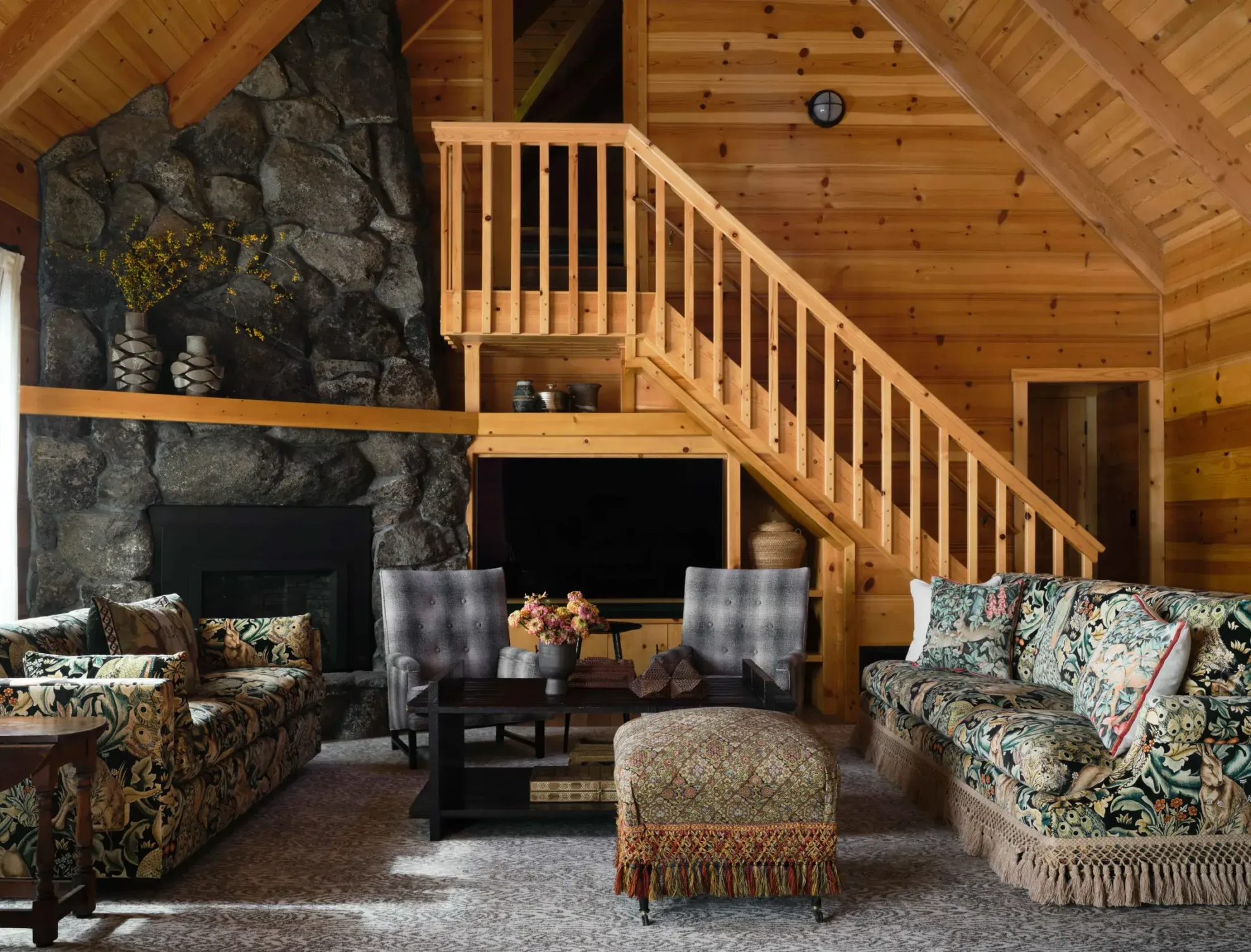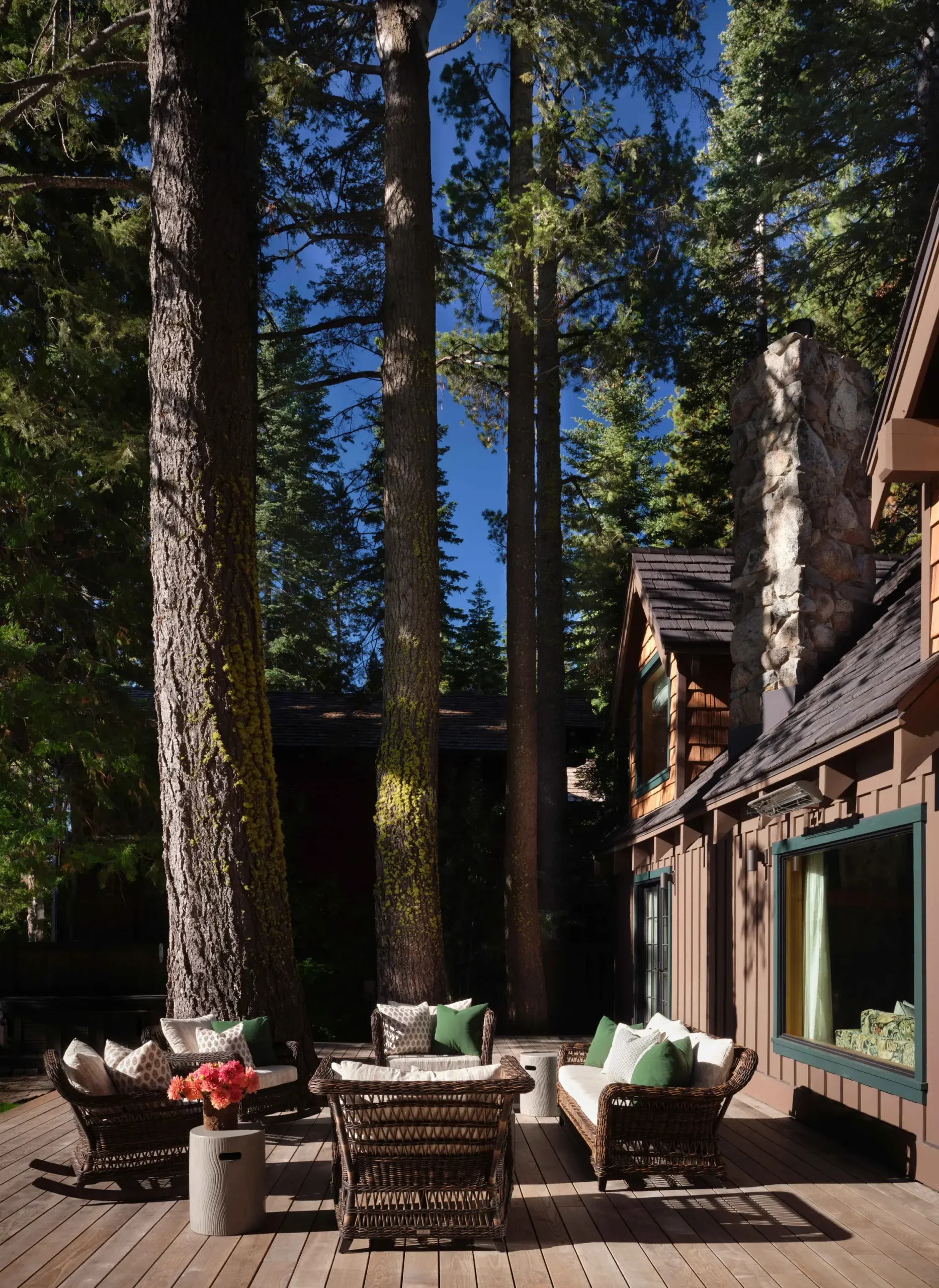 Sam projektant „zakochał się w tym małym” i jego dziwactwach, w tym w tym, co ze śmiechem nazywa „zapachem boazerii z lat 70. XX wieku”. Za jego namową właściciele domów sprzedali pierwszą nieruchomość i wyremontowali drugą. Tradycyjny domek wymagał szybkiej renowacji. „Przeprowadziliśmy wiele modernizacji i zrobiliśmy to w ciągu jednego sezonu budowlanego. W Tahoe zimą nie mogliśmy nic zrobić” mówi de la Cruz. Rodzina, składająca się z dwójki rodziców pracujących w branży technologicznej i dwójki dzieci w wieku gimnazjalnym, jest „bardzo bezpretensjonalna” twierdzi projektant. Chcieli jak najlepiej wykorzystać teren obiektu latem. Pomimo zimowej reputacji regionu, projektant postawił sobie za cel estetykę, która wytrzyma każdą temperaturę i nie będzie zbyt tematyczna.