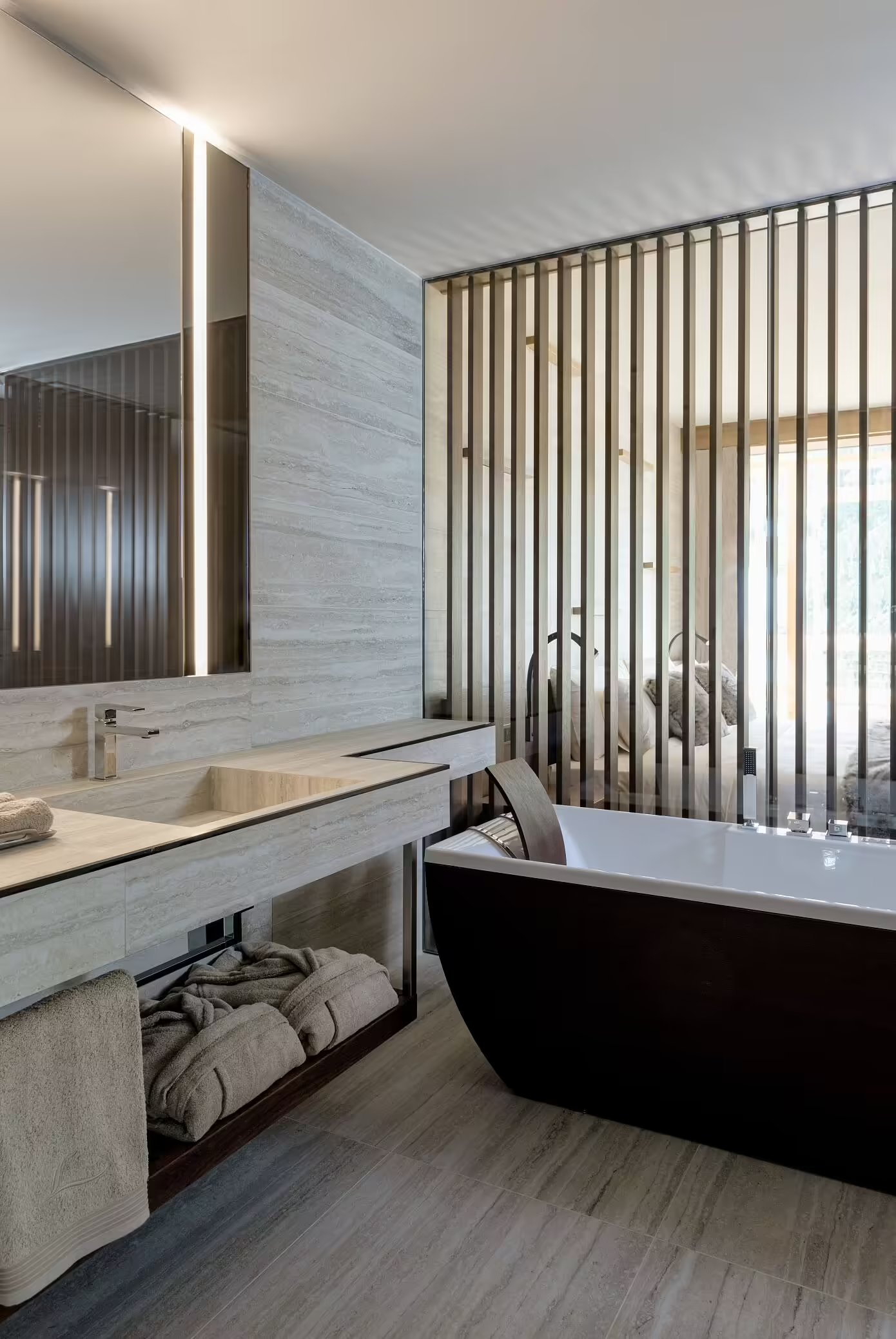 Projekt aranżacji wnętrz w Lefay Resort & Spa Dolomiti to dzieło cenionego studio Apostoli, które specjalizuje się w branży hotelarskiej i wellness. Pomysł opiera się na bliskiej współpracy z zespołem Lefay Resorts i uwzględnia wartości marki, takie jak współczesny luksus, włoskość oraz zrównoważony rozwój. Projekt łączy elementy ekologiczne z nowoczesnym designem, stawiając na energooszczędność oraz dbałość o środowisko.