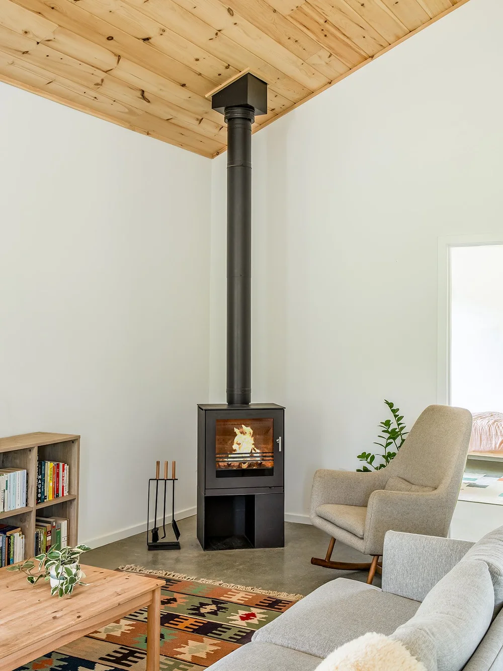 Projekt o powierzchni 98 m² (1050 stóp kwadratowych) łączy funkcjonalność z prostotą formy, tworząc wygodny dom dla młodej rodziny prowadzącej własne gospodarstwo.