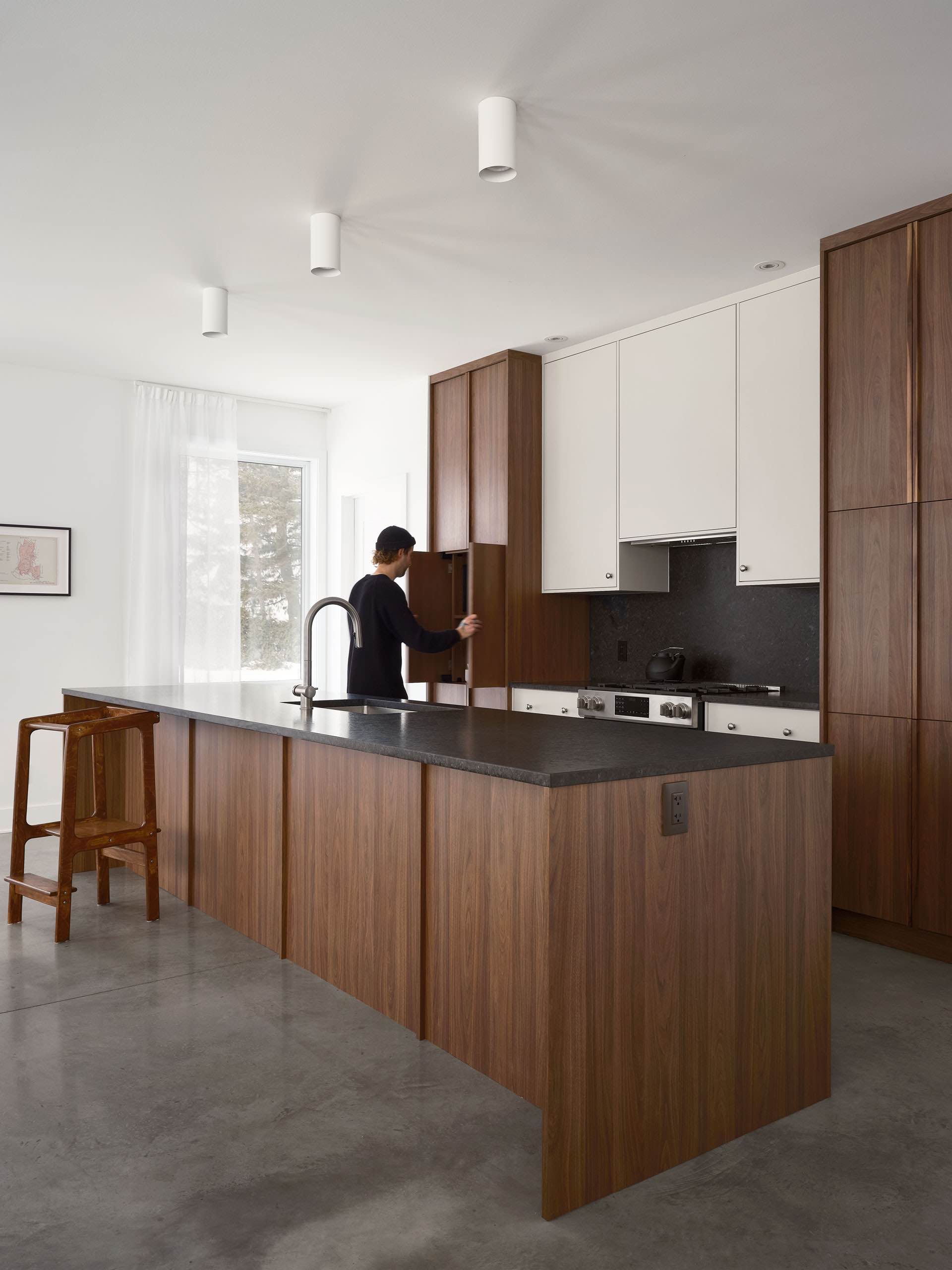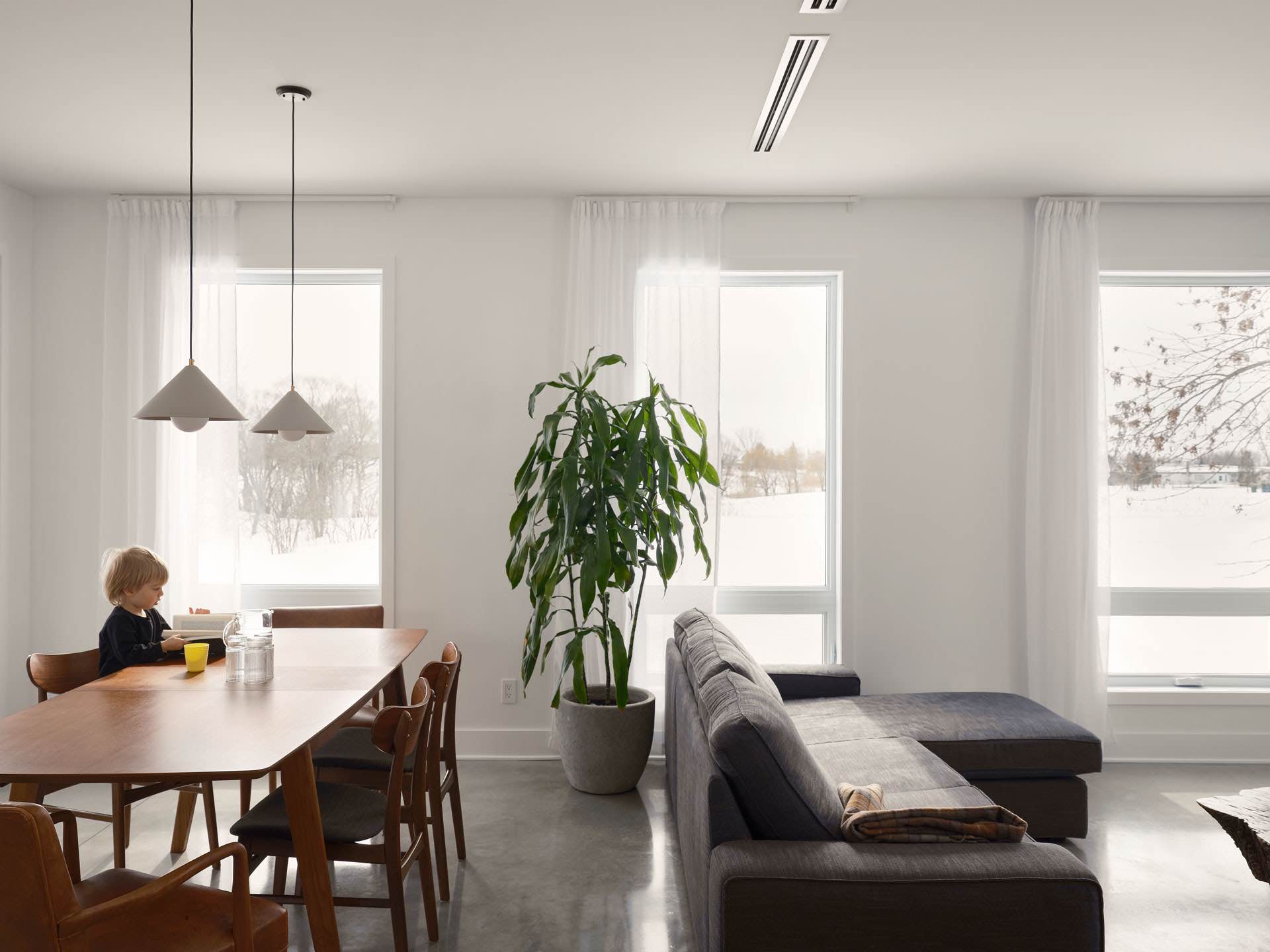 Ten dom o powierzchni 148 m² (1590 stóp kw.) został zaprojektowany dla Meggie i Jasmina – pary pasjonującej się architekturą, która zawodowo łączy kompetencje projektantki i wykonawcy. Wspólnie z zespołem Écorce stworzyli wizję domu rodzinnego ewoluującego w czasie, idealnie wkomponowanego w otaczający ekosystem.