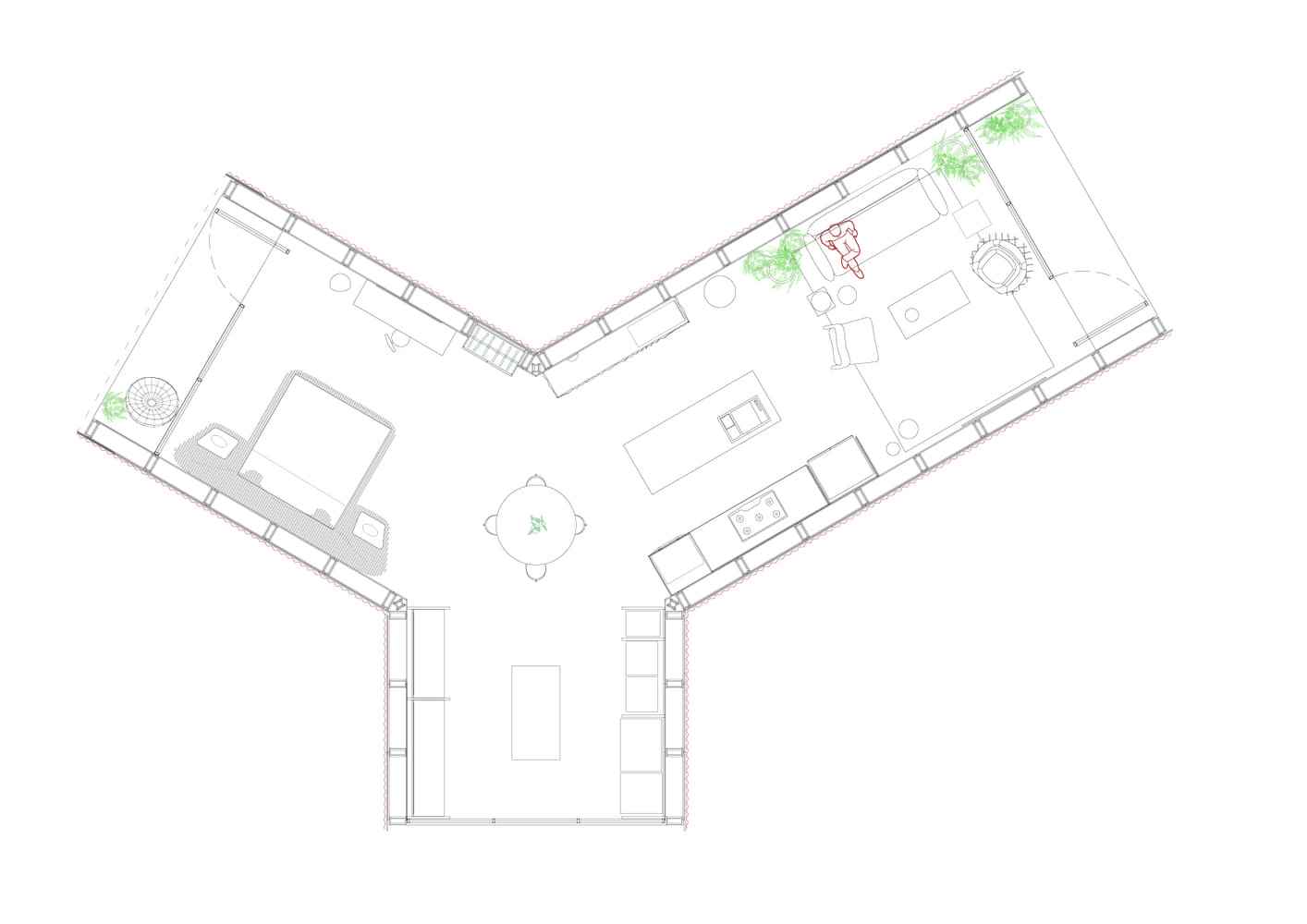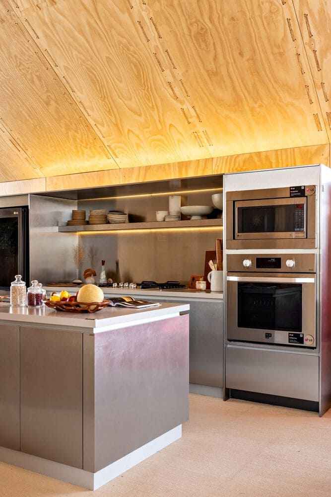 Wnętrze tego nowoczesnego domu tworzy spójną, elegancką przestrzeń, zaprojektowaną z myślą o komforcie, funkcjonalności i estetyce. Drewniane wykończenia, jasne kolory i autorskie meble nadają wnętrzu przytulny, introspektywny charakter. Znajdziemy tu salon, kuchnię, jadalnię, sypialnię oraz dwa balkony – wszystkie pomieszczenia wykończone materiałami przyjaznymi środowisku, ograniczającymi ilość odpadów trudnych do recyklingu. Kuchnia ze stali nierdzewnej zaprojektowana specjalnie dla LG ThinQ House spełnia najwyższe standardy higieny, trwałości i nadaje się w 100% do recyklingu. Zrównoważony design spotyka się tutaj z najnowszymi osiągnięciami technologicznymi – wszystko z myślą o przyszłości planety.