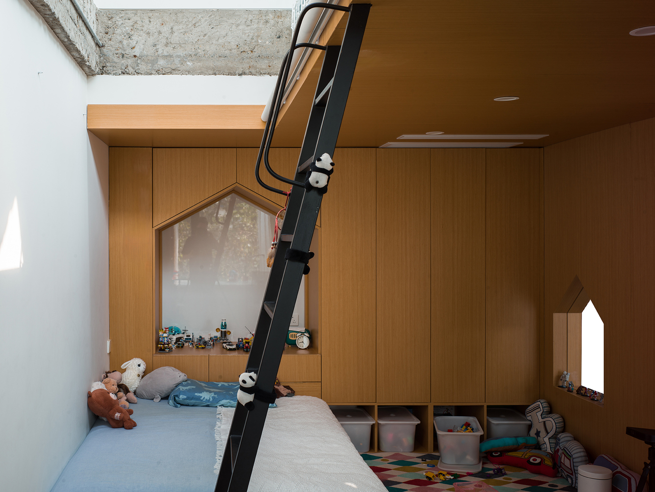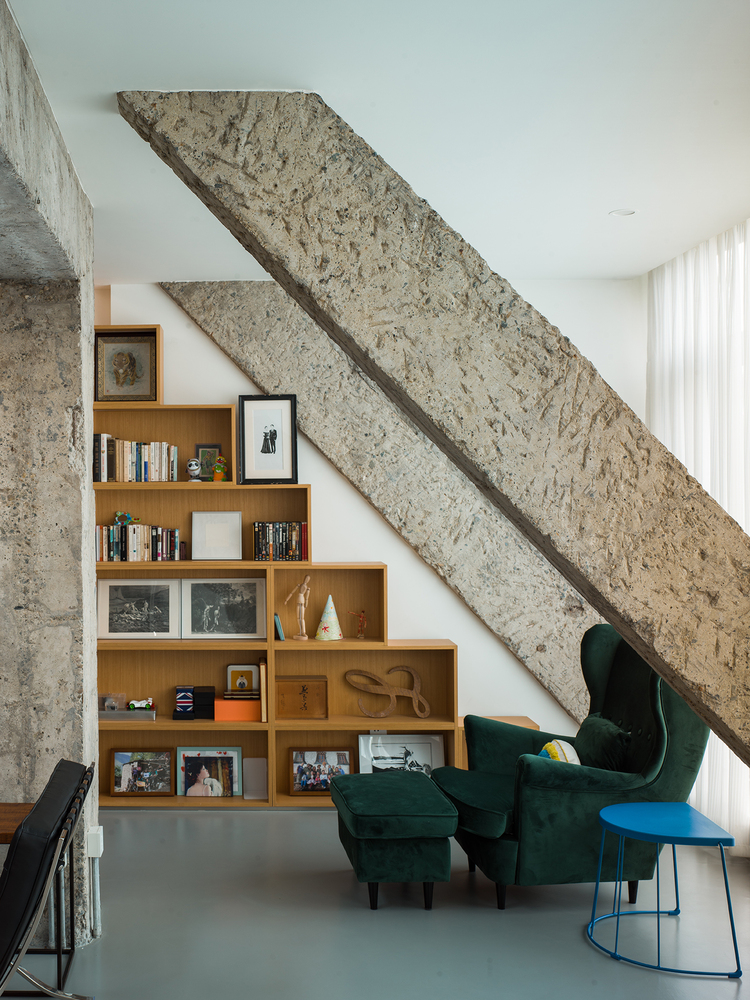 W odróżnieniu od wielu współczesnych renowacji, które koncentrują się na elewacjach, projekt ten dotyczy wnętrza – funkcjonalnego i emocjonalnego. Głównym celem było maksymalne zwiększenie przestrzeni użytkowej: zabudowano balkon, usunięto części stropu, by połączyć kondygnacje wewnętrznymi schodami, a stare prefabrykowane pomieszczenia na dachu zamieniono w bardziej komfortowe środowisko z ogrodem na dachu. To nie była estetyczna transformacja dla oka przechodnia, ale zmiana służąca realnemu życiu.
