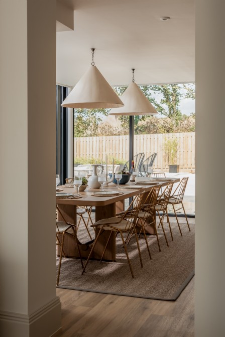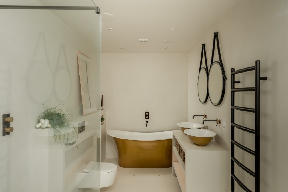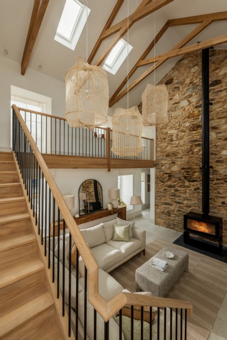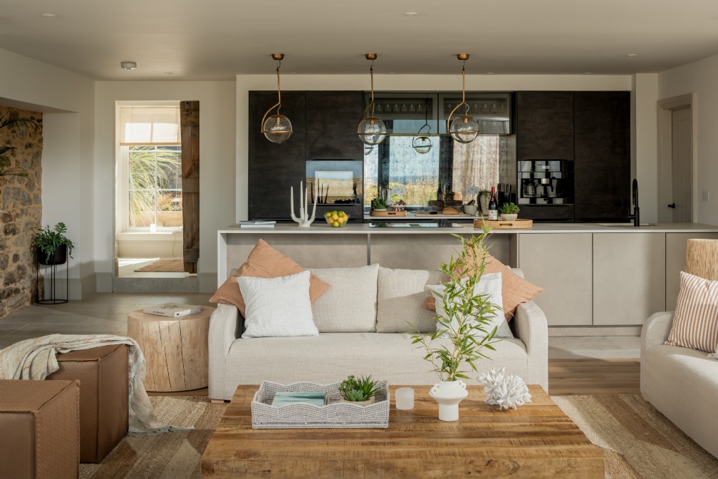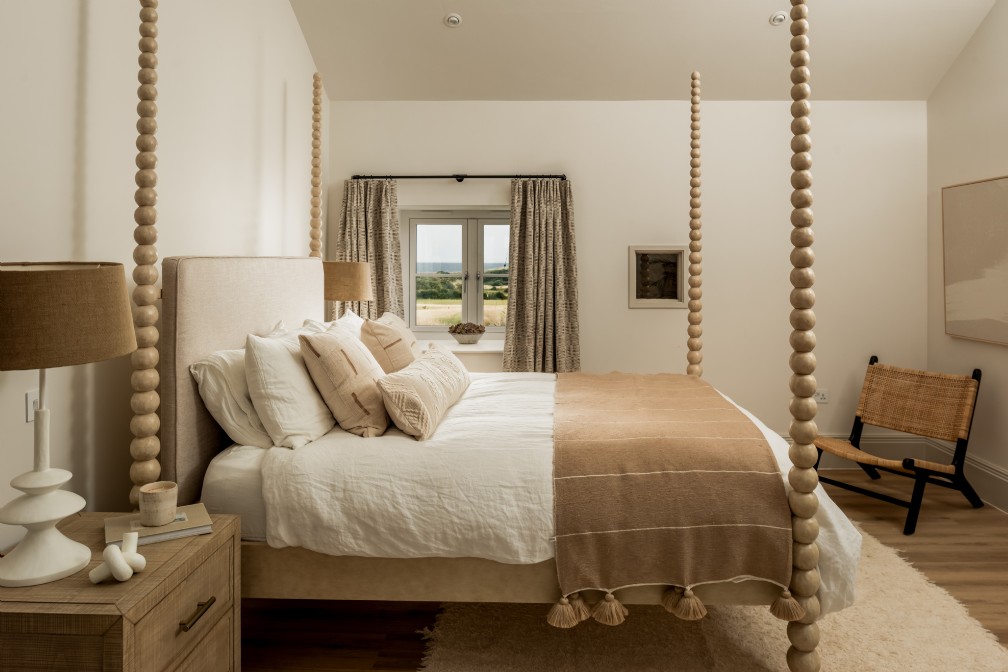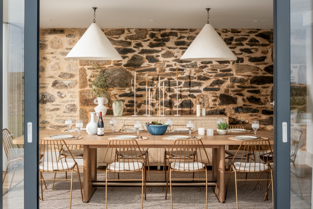 Nie ma takiej rzeczy, która mogłaby poinformować gości, że jeszcze niedawno ten luksusowy dom był opuszczonym reliktem kornwalijskiej przeszłości. Podłogi wyłożone kamieniami i ściany z gaszonego wapna zamieniają to miejsce w czyste płótno w odcieniu wybrzeża. Tekstury, takie jak wazony z dmuchanego szkła i naturalne bambusowe osłony okienne, również dodają ciepłego rozproszenia światła. Dzięki swojemu charakterowi galerii, wnęki okienne nagle stają się małymi ołtarzykami wystawowymi, nadającymi się do eksponowania kolekcji zebranych skarbów.