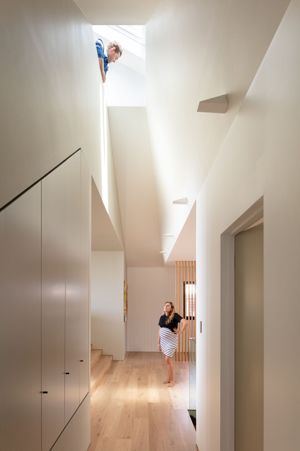 Na nowym poziomie budynku znajduje się apartament główny, który otacza duże przeszklenia. Dzięki nim, do wnętrza domu wpada naturalne światło, co jednocześnie zapewnia wizualne połączenie między różnymi poziomami przestrzeni. Zewnętrzna okładzina z aluminium i cegły została wybrana z myślą o odporności na trudne warunki panujące na cyplu. Sterowane żaluzje w głównym apartamencie na najwyższym piętrze zapewniają prywatność przed sąsiadami oraz ochronę przed wczesnym porannym słońcem.