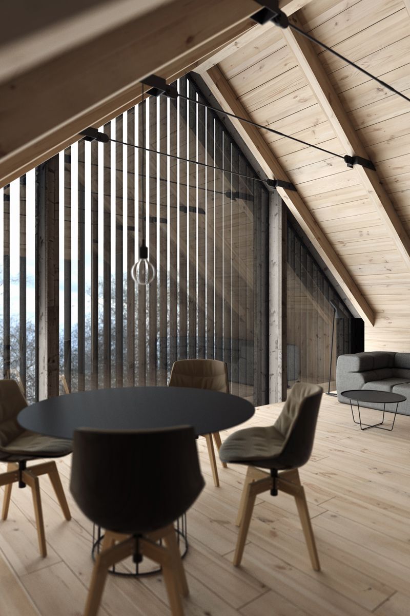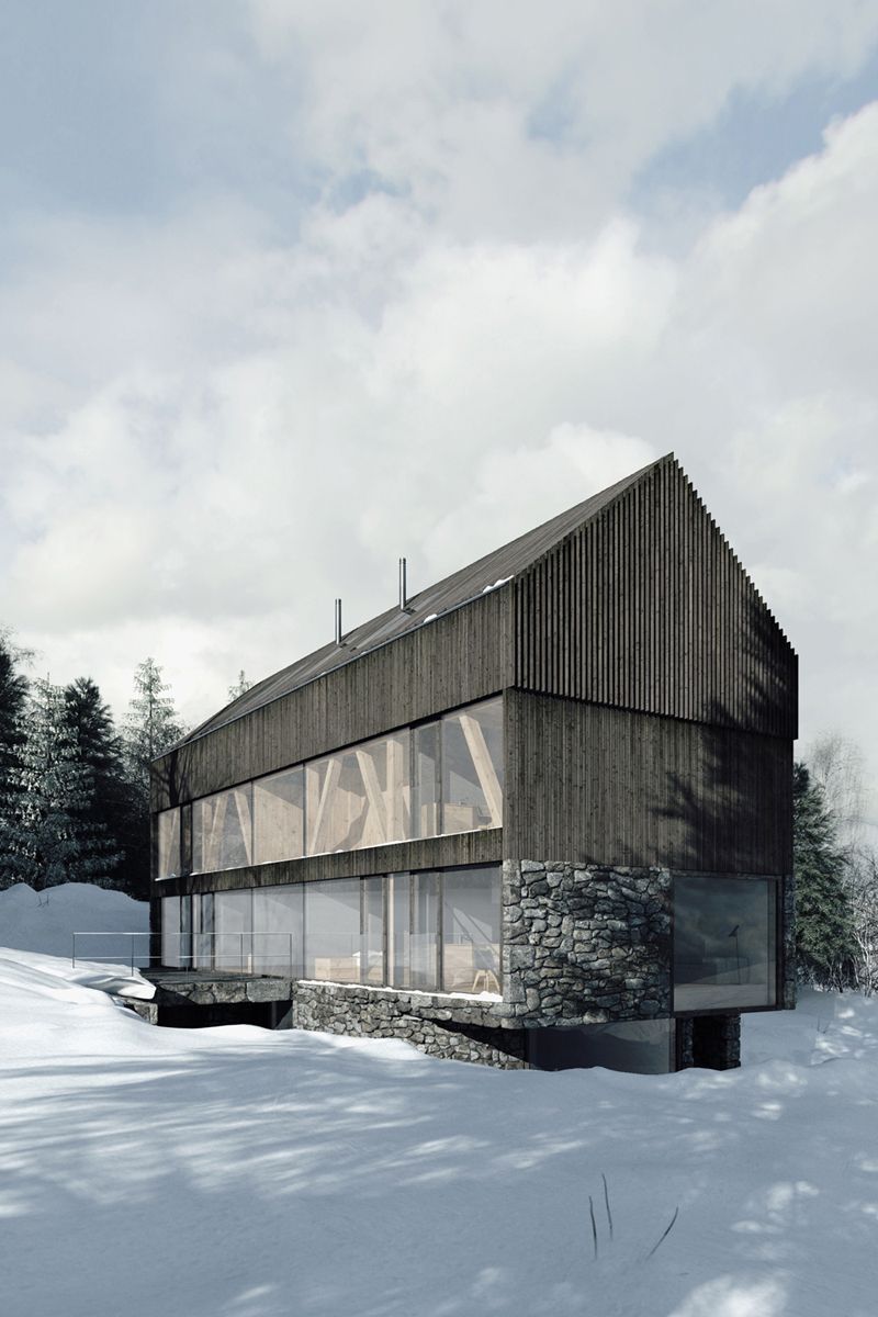 Dziś prezentujemy projekt kompleksu wypoczynkowego zlokalizowanego w Karpaczu, w prestiżowej dzielnicy Wilcza Poręba, na terenie bezpośrednio przylegającym do Karkonoskiego Parku Narodowego. Inwestycja została zaplanowana z myślą o harmonijnym wpisaniu architektury w górski krajobraz oraz zachowaniu walorów przyrodniczych regionu. Forma zabudowy nawiązuje do współczesnych interpretacji tradycyjnej architektury górskiej, w tym nurtu określanego jako nowoczesna stodoła, łącząc prostotę brył z naturalnymi materiałami i spokojną kolorystyką.