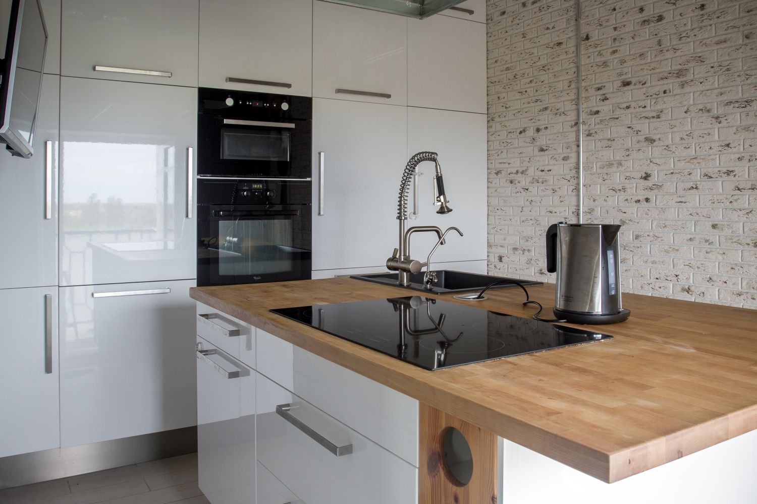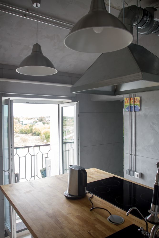 Kluczowym motywem aranżacyjnym są żółto-czarne oznaczenia ostrzegawcze, graficzne napisy typu „EXIT” czy „WC”, które pełnią zarówno funkcję użytkową, jak i dekoracyjną. Wysokość wnętrza wynosząca 3,8 m pozwoliła na zastosowanie antresoli, podestów i mini balkonów – w kuchni i łazience powstały dodatkowe poziomy, w pokoju dziecięcym wnęka z łóżkiem, a w sypialni stalowa konstrukcja balkonu do wypoczynku i przeglądania zdjęć z podróży. Całość tworzy spójne, nowoczesne mieszkanie loftowe, które łączy industrialną surowość z przytulną, osobistą atmosferą.