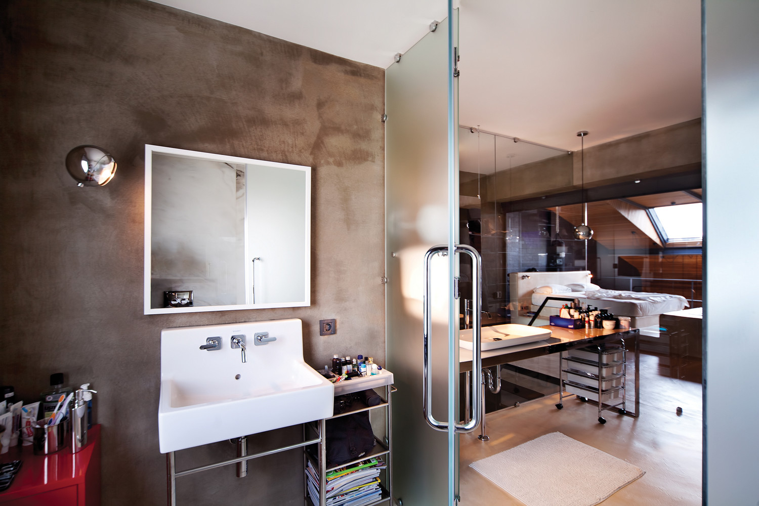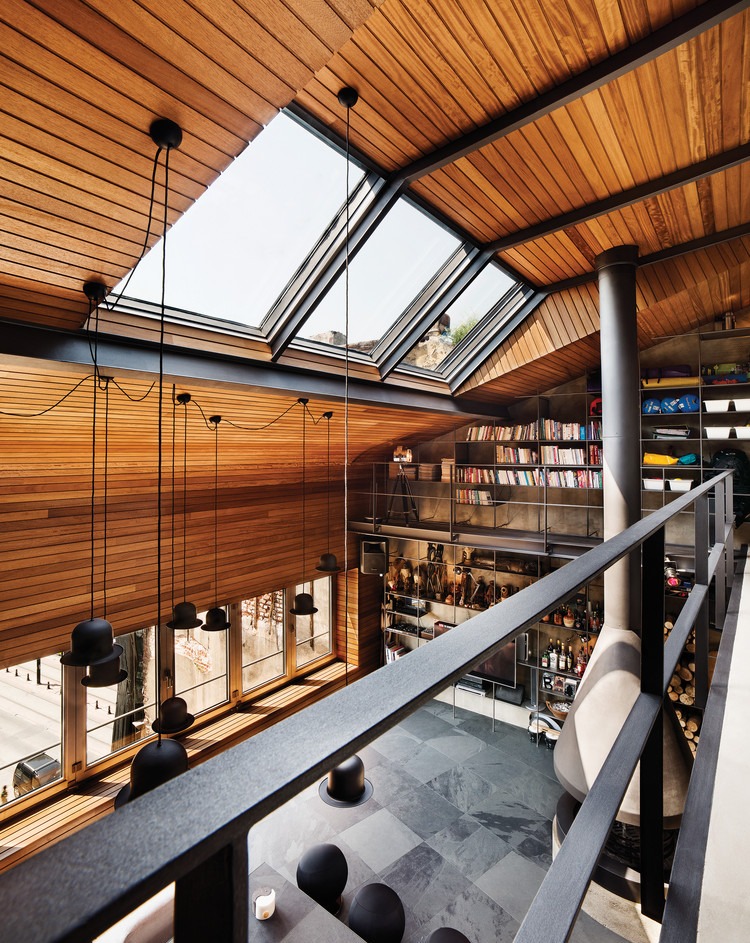 Architekci postawili na otwartość przestrzeni i maksymalne doświetlenie wnętrza. Małe okna zastąpiono dużymi przeszkleniami, które przekształcają salon w otwarty taras. W dachu pojawił się świetlik, który wpuszcza światło do antresoli, podkreślając loftowy charakter apartamentu. Całość zaplanowano jako jednolitą, spójną przestrzeń bez podziału na wiele pomieszczeń – idealną dla jednej osoby.