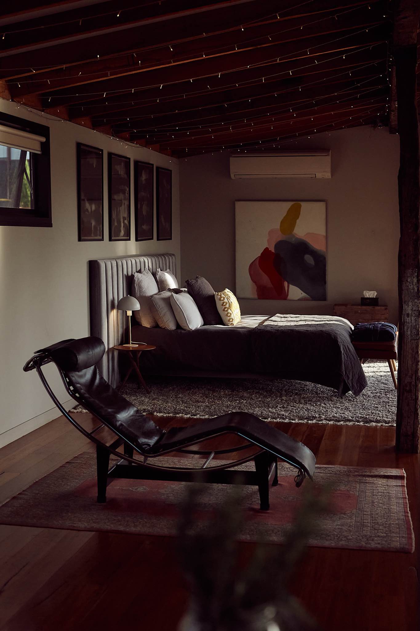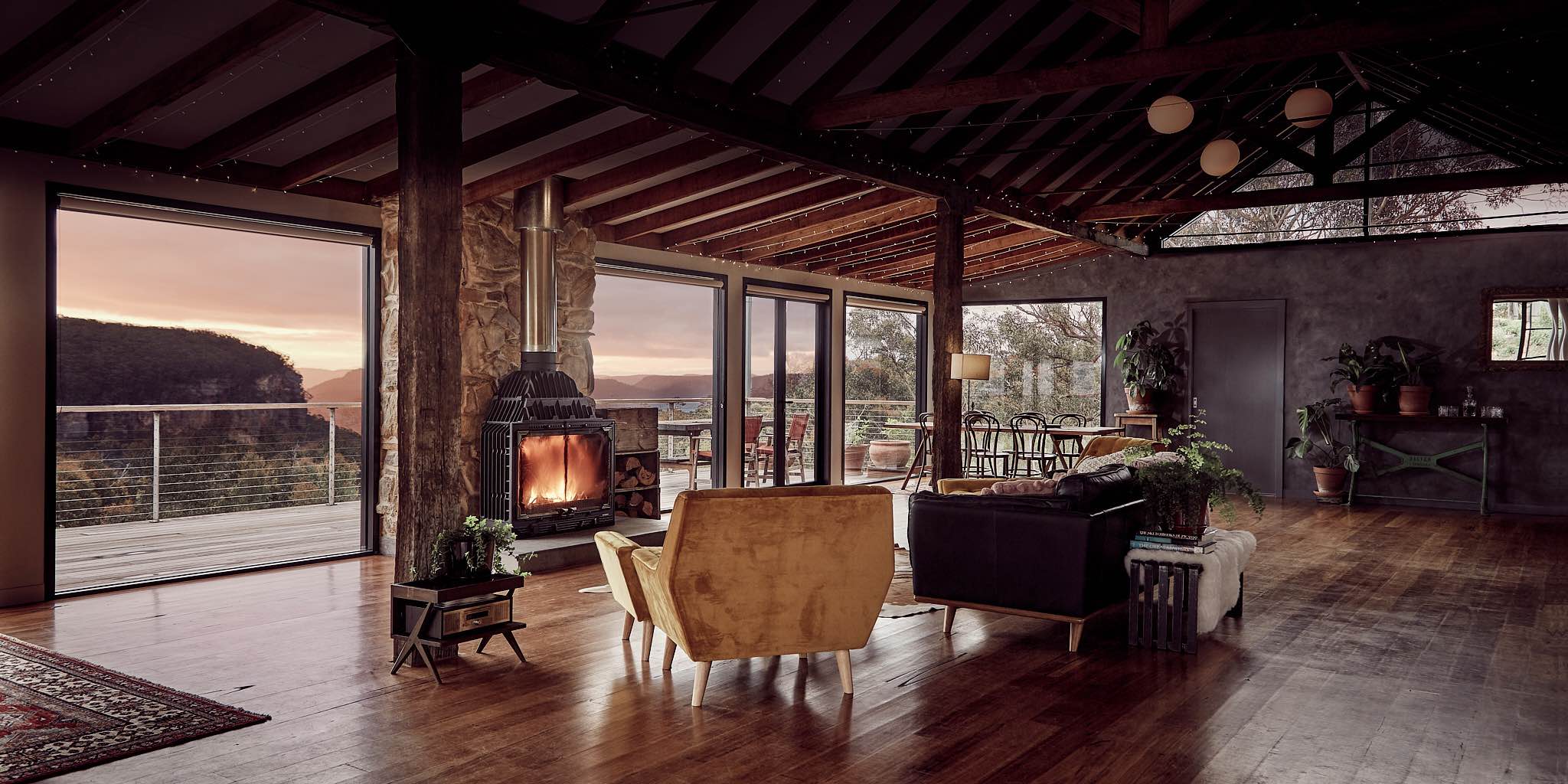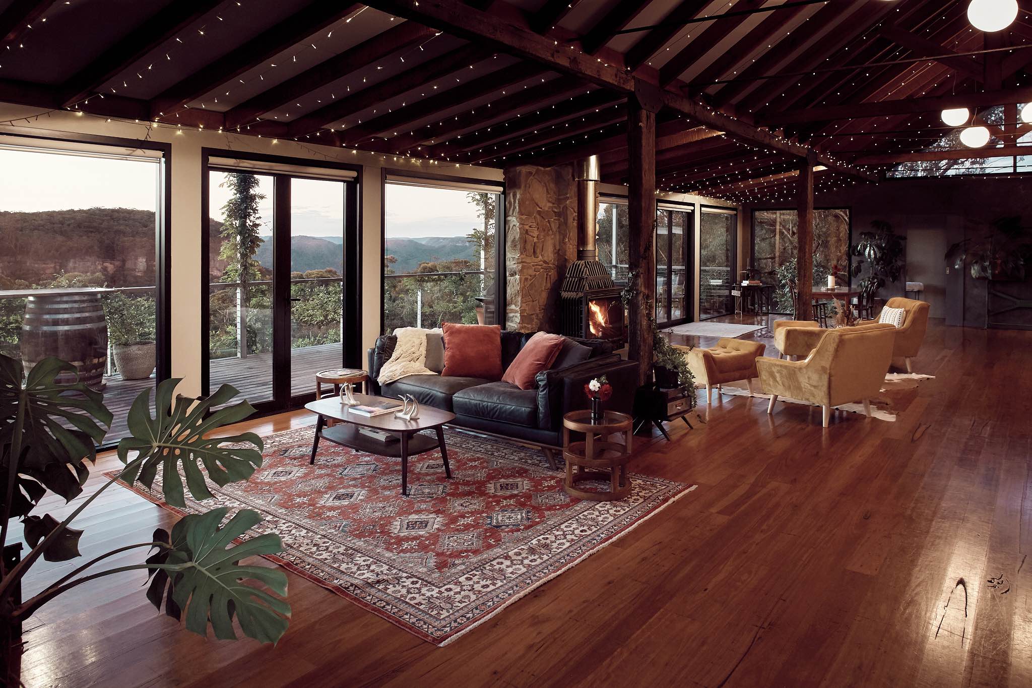 Machinery Shed to dawna szopa wpisana w otoczenie sadu, z widokiem na rozległą Kanimbla Valley. Odrestaurowana z zachowaniem pierwotnej struktury, zachwyca surowością, drewnianą podłogą, kamiennym kominkiem i odsłoniętymi belkami dekorowanymi świetlną girlandą. Wnętrze utrzymane w stylistyce mid-century pozostaje ciepłe, proste i intymne.