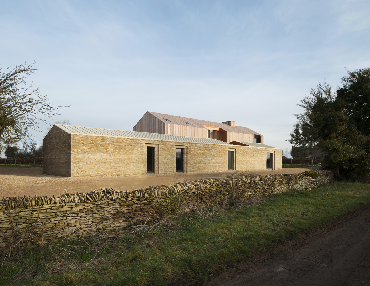 Ta nowoczesna stodoła w Cotswolds reinterpretuje wiejską architekturę, łącząc tradycyjne formy stodół z lokalnymi materiałami i nowoczesnymi rozwiązaniami.