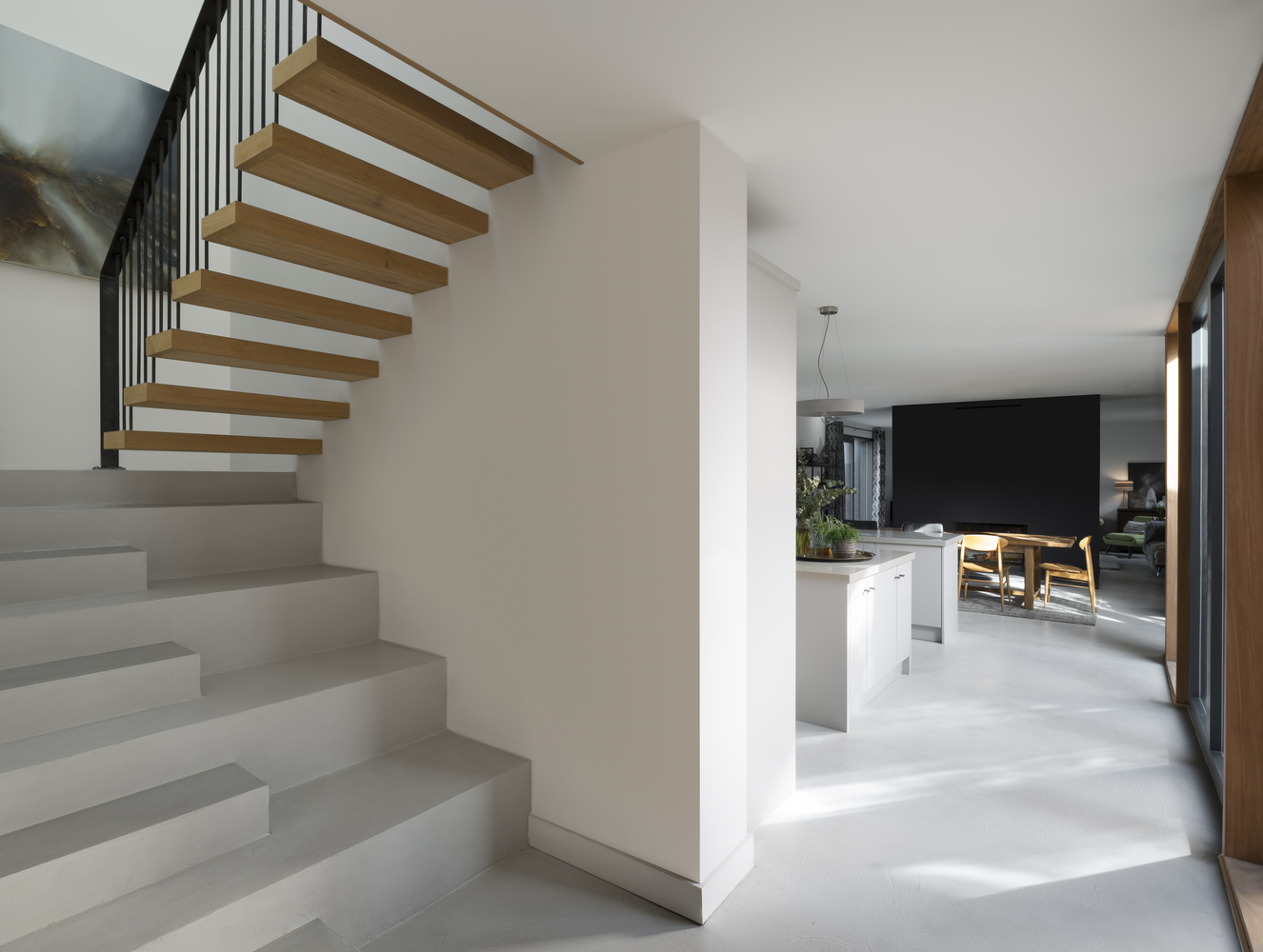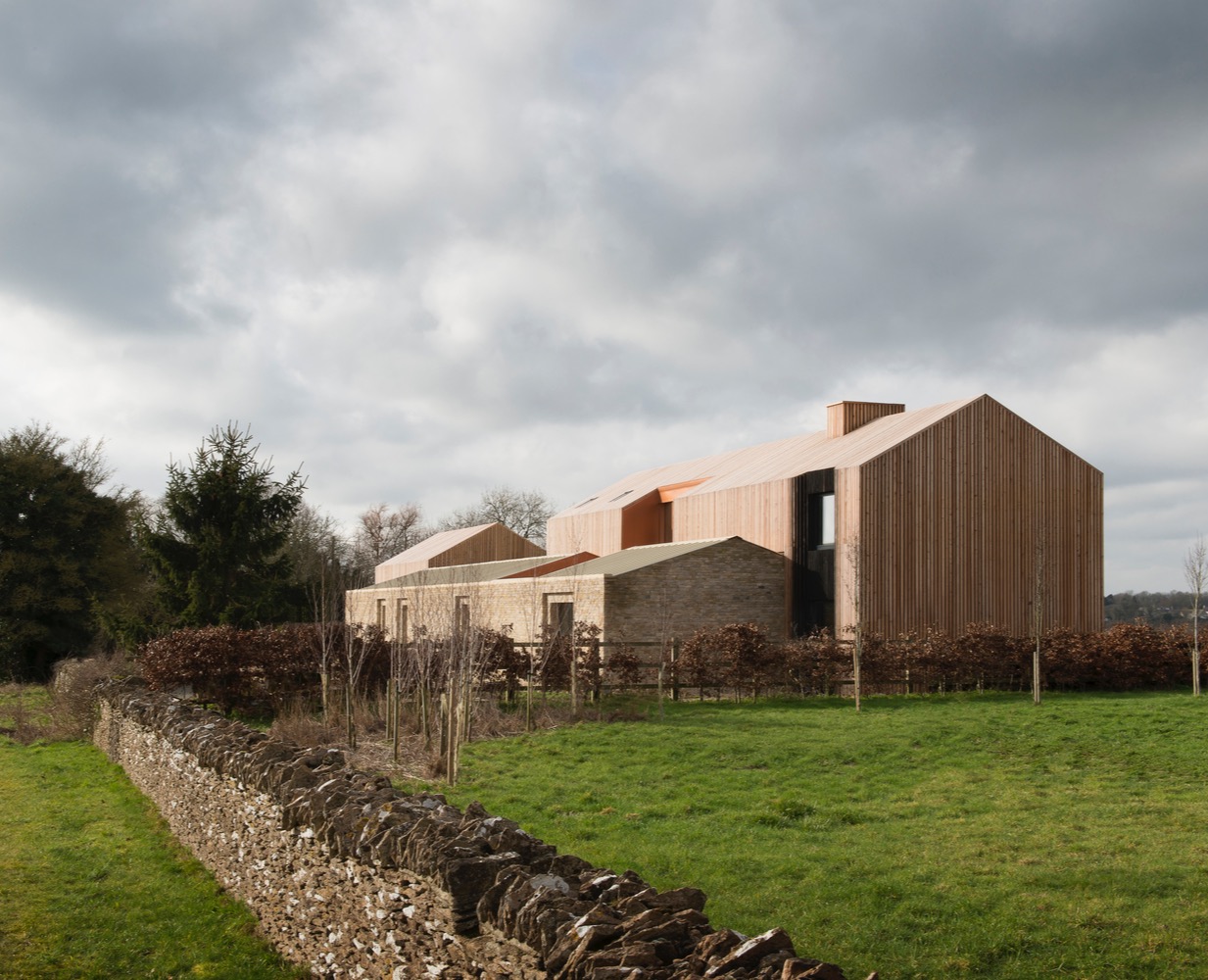 Materiałowe rozwiązania zostały dobrane tak, aby naturalnie starzały się, wtapiając dom w krajobraz Cotswolds. Dom jest jednocześnie nowoczesnym i ponadczasowym miejscem, które szanuje i odświeża lokalne tradycje budowlane.