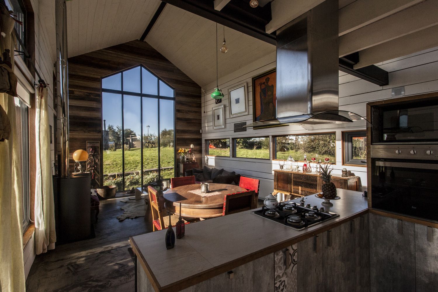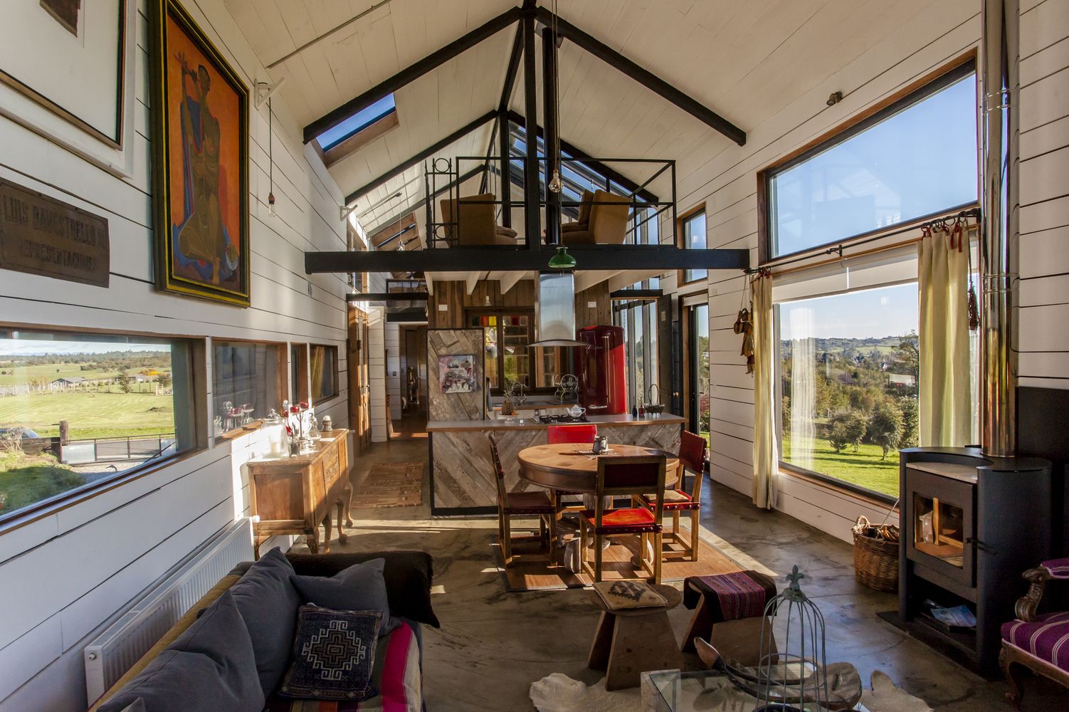 Ekologiczny dom ma dwa poziomy i dwuspadowy dach, a z jednej strony opiera się na kolumnach, które wyrównują pochylony teren działki. Ze względu na swą lokalizację mieszkańcy mogą podziwiać piękne widoki na jezioro Llanquihue oraz górujące nad okolicą wulkany Osorno i Calbuco. Para prosiła architektów o uwzględnienie tych wyjątkowych widoków, które stały się priorytetem w całym procesie projektowym. Znaczenie miała też ekspozycja na słońce całego wnętrza oraz wszechstronność i przestronność pomieszczeń. Właściciele chcieli również wprowadzić w projekt odzyskane rodzime materiały budowlane oraz stare elementy, które gromadzili przez wiele lat. W tworzeniu projektu aktywnie uczestniczyła właścicielka, która sama jest artystką, a która zdecydowanie pomogła ukształtować ostateczny wygląd całej nowoczesnej stodoły, projektując w dużym stopniu jej wnętrza.