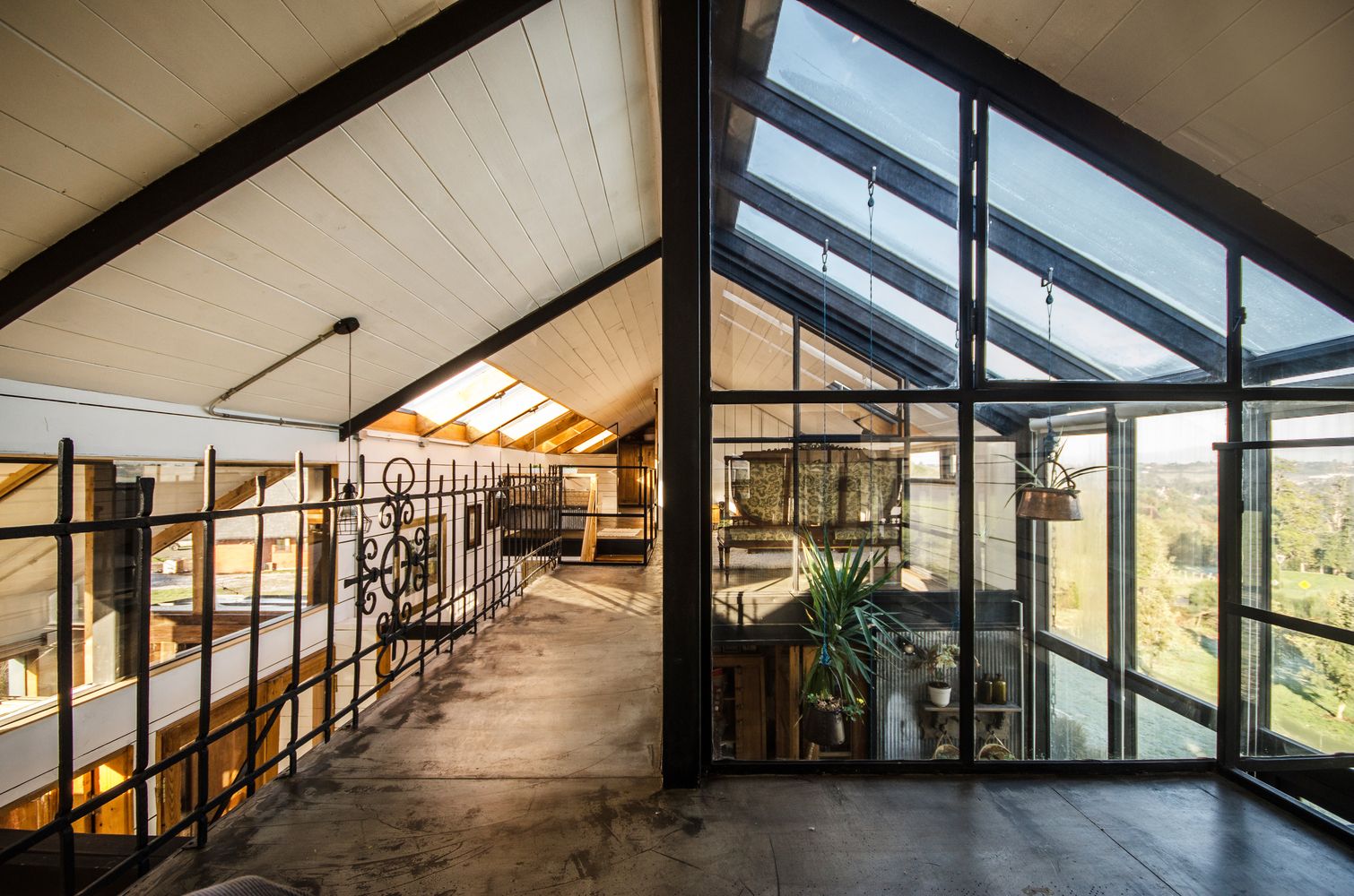 Do nowoczesnej stodoły wchodzi się od strony wschodniej, a po wejściu zaskakuje piękny, zimowy ogród o podwójnej wysokości. Ociepla on popołudniowe słońce, tworząc w domu atmosferę ciepłą i pełną życia. Ten zimowy ogród to centrum całego domu nadający wiejski charakter. Po stronie północnej urządzono przestrzenie wspólne – salon, jadalnię oraz połączoną kuchnię. Całość ogrodził balkon drugiego piętra. Bardziej prywatne pomieszczenia znajdują się w skrzydle południowym, gdzie architekci zaplanowali sypialnie, domowe biuro oraz łazienki.