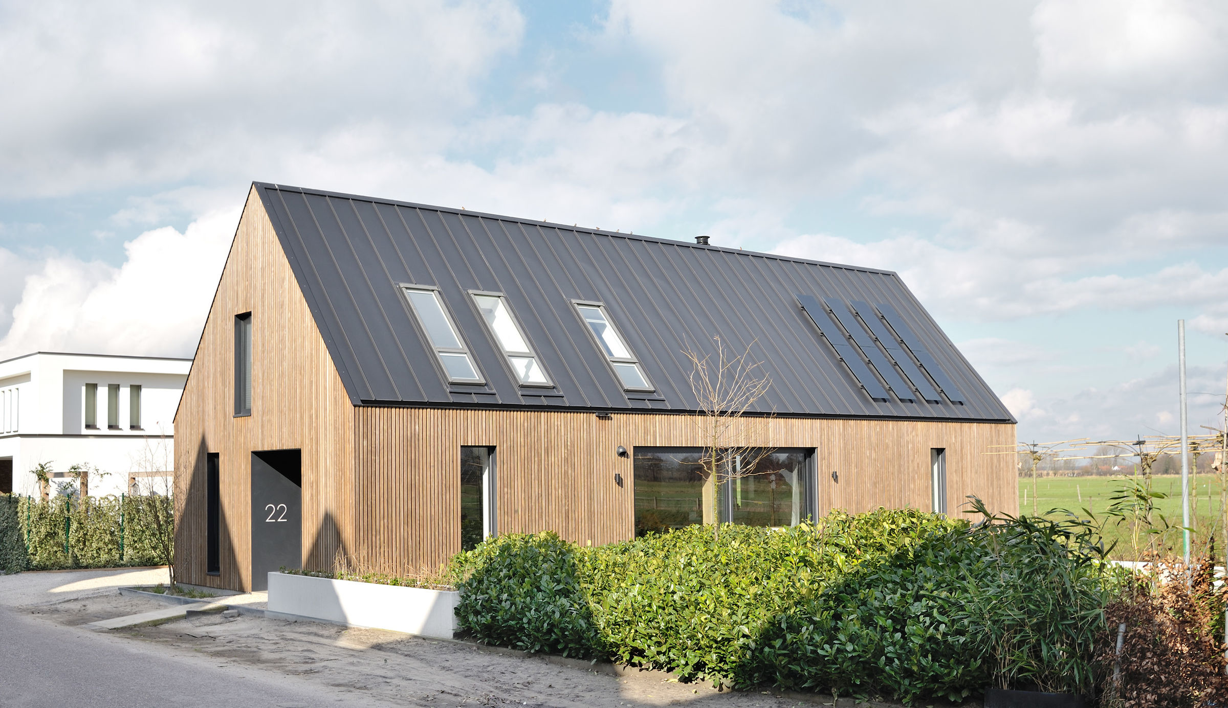 Dom zaprojektowano z myślą o zrównoważonym rozwoju. Dach z blachy na rąbek zabezpieczono naturalnym olejem rzepakowym, a elewację z drewna Nobel Wood wykonano z szybko rosnącego surowca FSC, zakonserwowanego przy użyciu produktów powstałych z odpadów po produkcji trzciny cukrowej. Energię wspierają panele fotowoltaiczne Stion, które oprócz funkcji użytkowej wyróżniają się wysoką estetyką. Dla architektów ważne było, aby rozwiązania ekologiczne nie były kompromisem, lecz integralną częścią estetyki budynku.