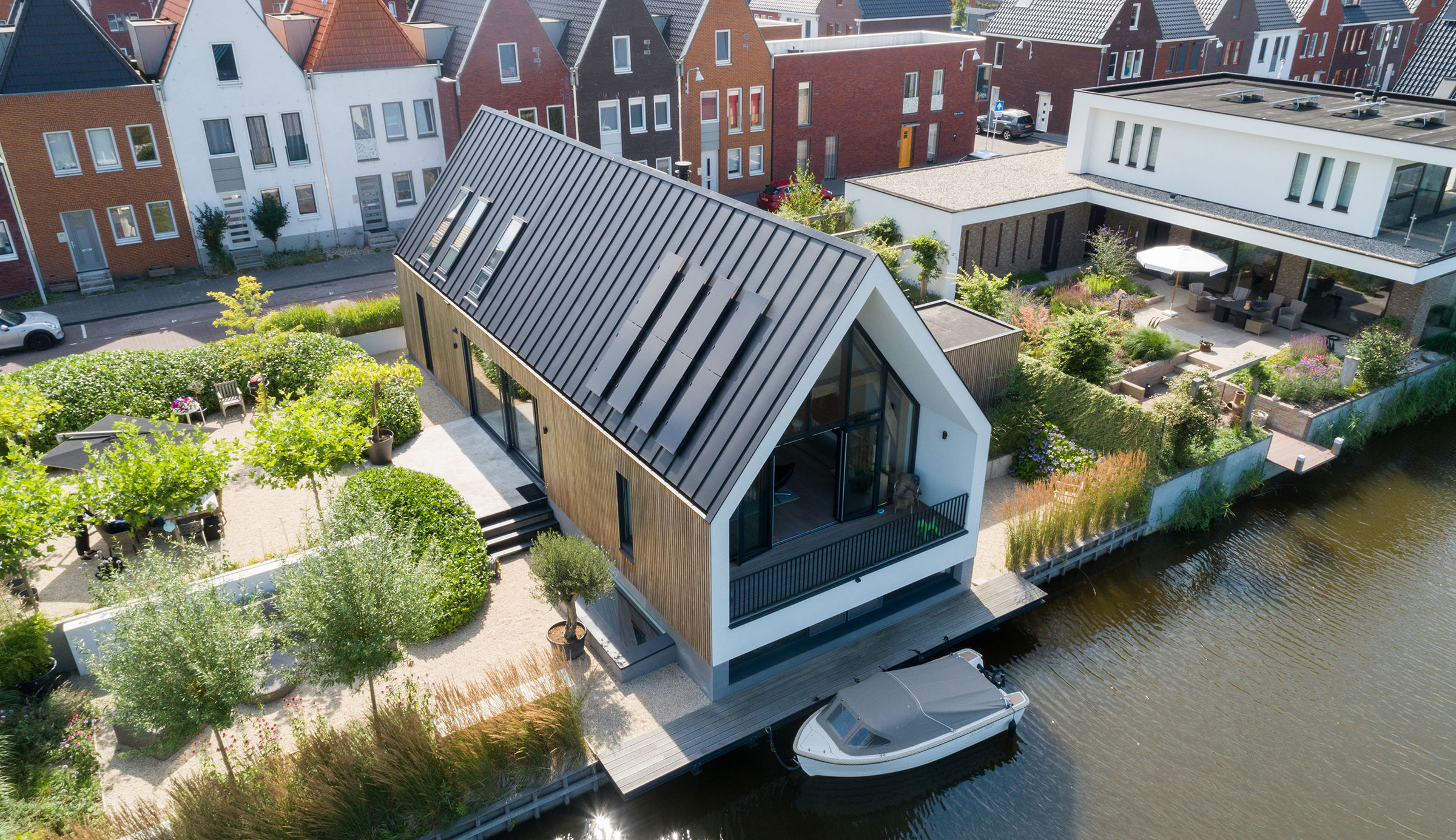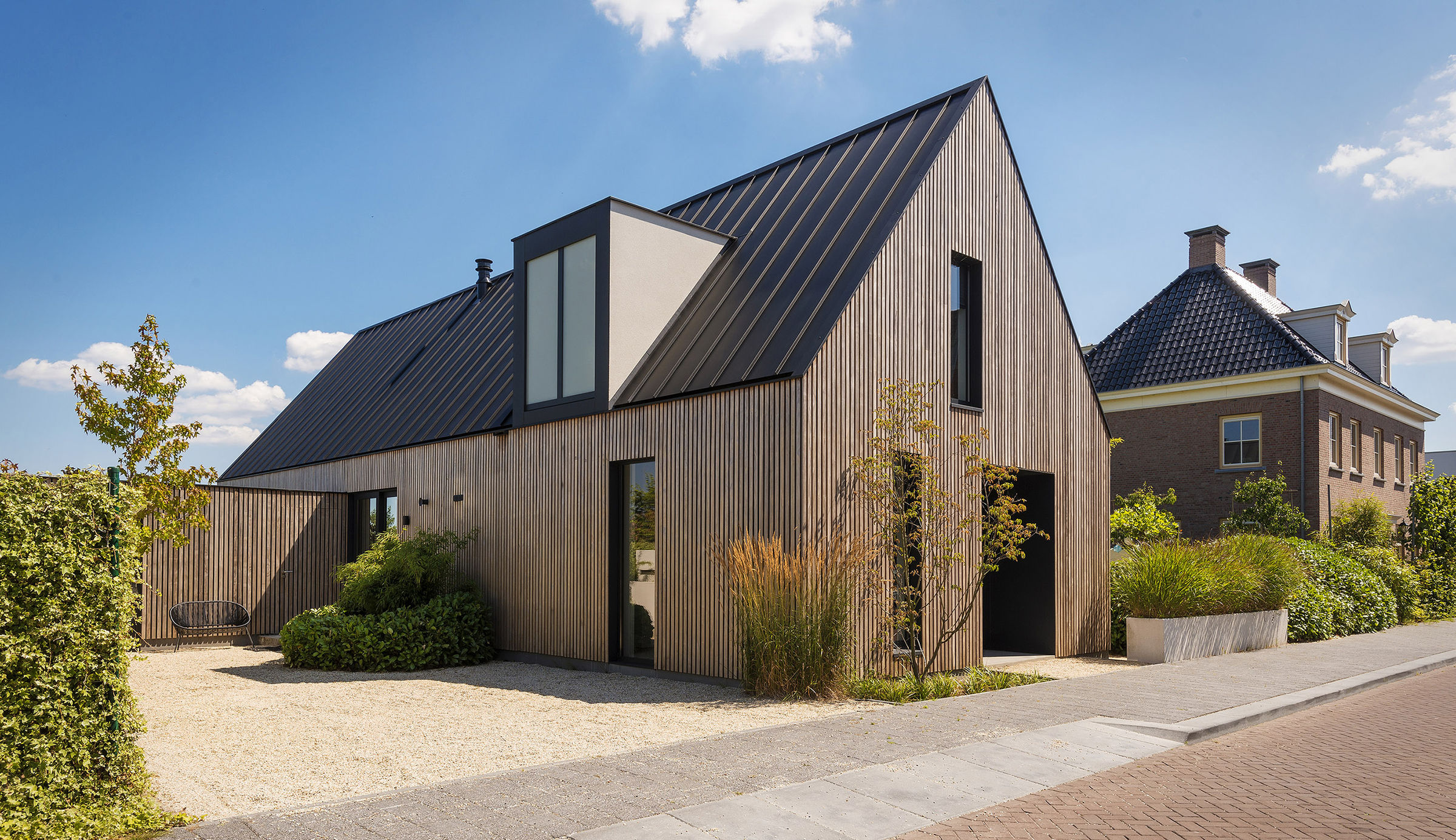 Longhouse powstał w Amersfoort, w wyjątkowym miejscu – dokładnie na granicy gęstej zabudowy miejskiej i otwartego, zielonego krajobrazu poprzecinanego rzeką Laak. Architekci z pracowni Studio-PLS potraktowali to położenie jako punkt wyjścia do stworzenia domu balansującego pomiędzy sprzecznościami: miejskim i wiejskim, wąską ulicą i szerokimi panoramami, nowoczesnością i tradycją. Efektem jest dom o formie długiej stodoły, który łączy industrialną precyzję z rustykalną prostotą.
