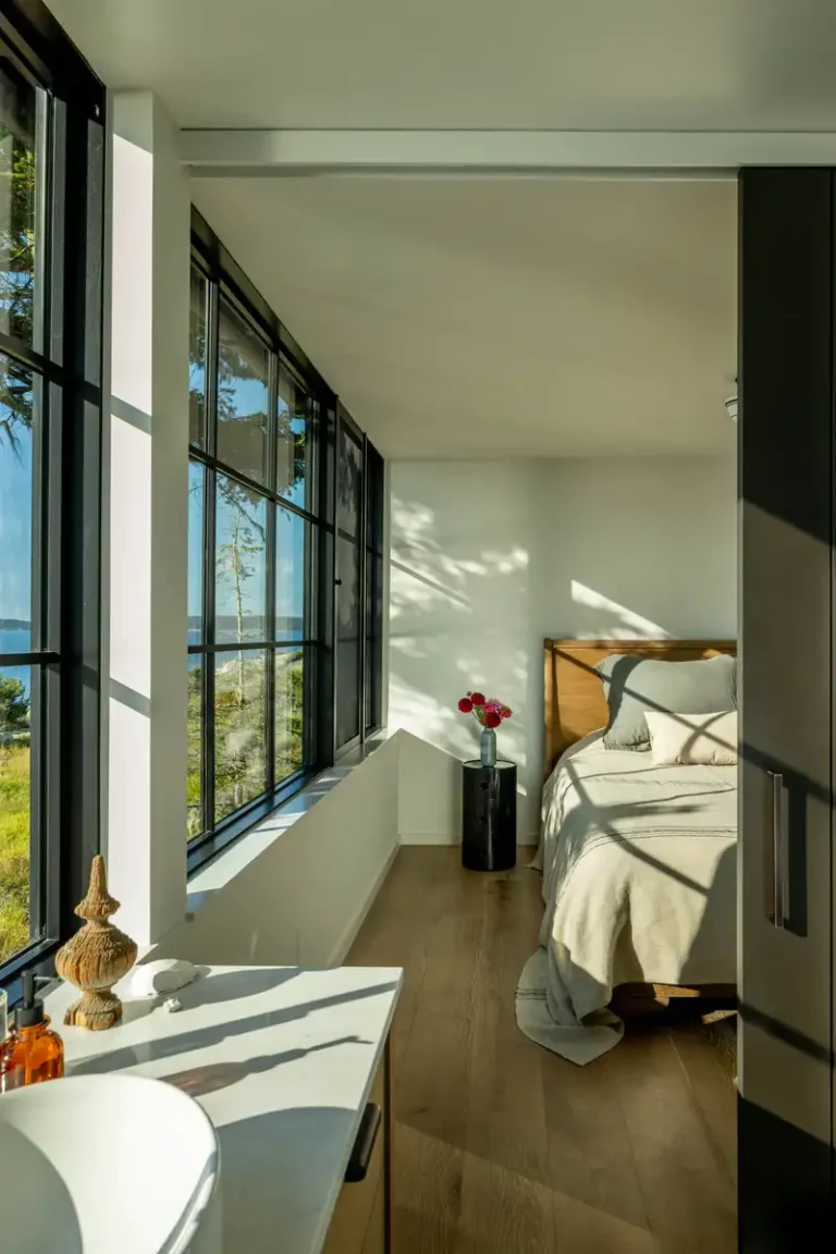 Na Lopez Island w archipelagu San Juan powstał dom, który w wyjątkowo precyzyjny sposób odpowiada na ograniczenia miejsca. Projekt Lopez Lookout autorstwa pracowni Heliotrope został zrealizowany na zachodniej, nadwodnej działce w stanie Waszyngton, gdzie niemal każdy fragment terenu objęty był rygorystycznymi strefami ochronnymi. To właśnie te warunki sprawiły, że architektura musiała stać się nie tylko formą mieszkania, ale także narzędziem bardzo uważnego negocjowania relacji z krajobrazem.