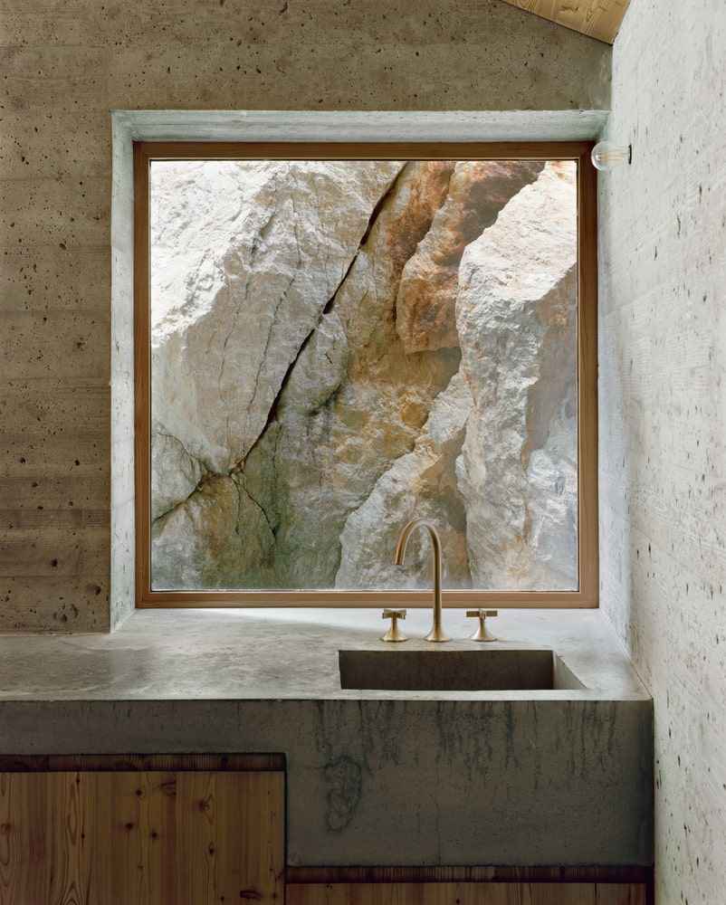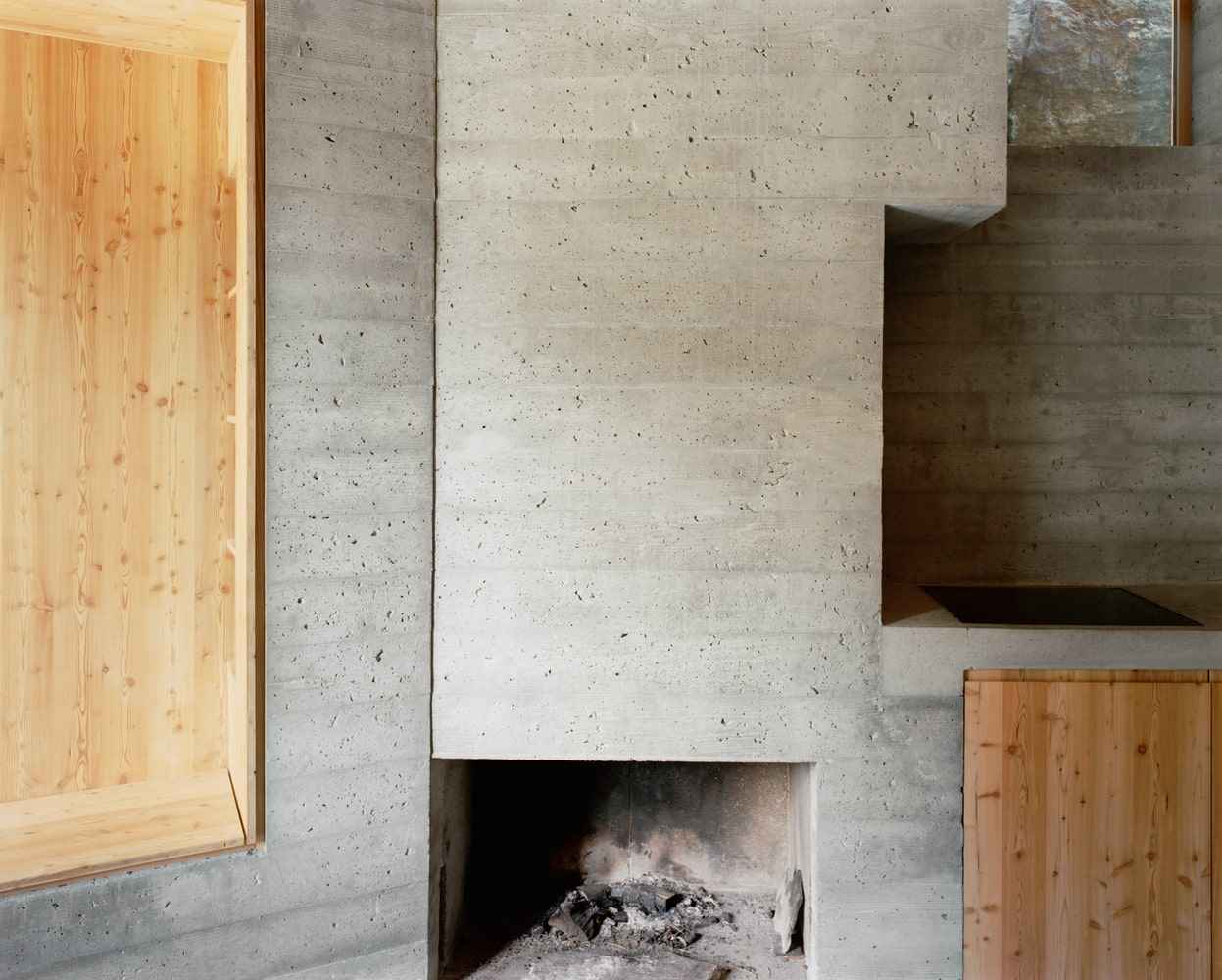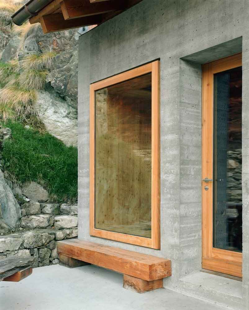 Nowym elementem architektury jest surowa betonowa ściana, która subtelnie współgra z otaczającą skałą. Beton nie dominuje, lecz podkreśla mineralny charakter krajobrazu. Bryła chaty wznosi się wzdłuż naturalnego profilu głazu, nie dotykając go, co nadaje budynkowi lekkość i organiczny rytm. Architekci podkreślają, że beton i skała, mimo różnic, tworzą jedność – łączy je wspólne pochodzenie i kolor tlenku żelaza, który nawiązuje do odcienia drewnianych ram okiennych. W ten sposób górska chata w Arolla staje się manifestem współczesnej architektury – łączącej naturę, tradycję i nowoczesne formy, tak jak robi to nowoczesna stodoła w duchu szwajcarskiej precyzji.