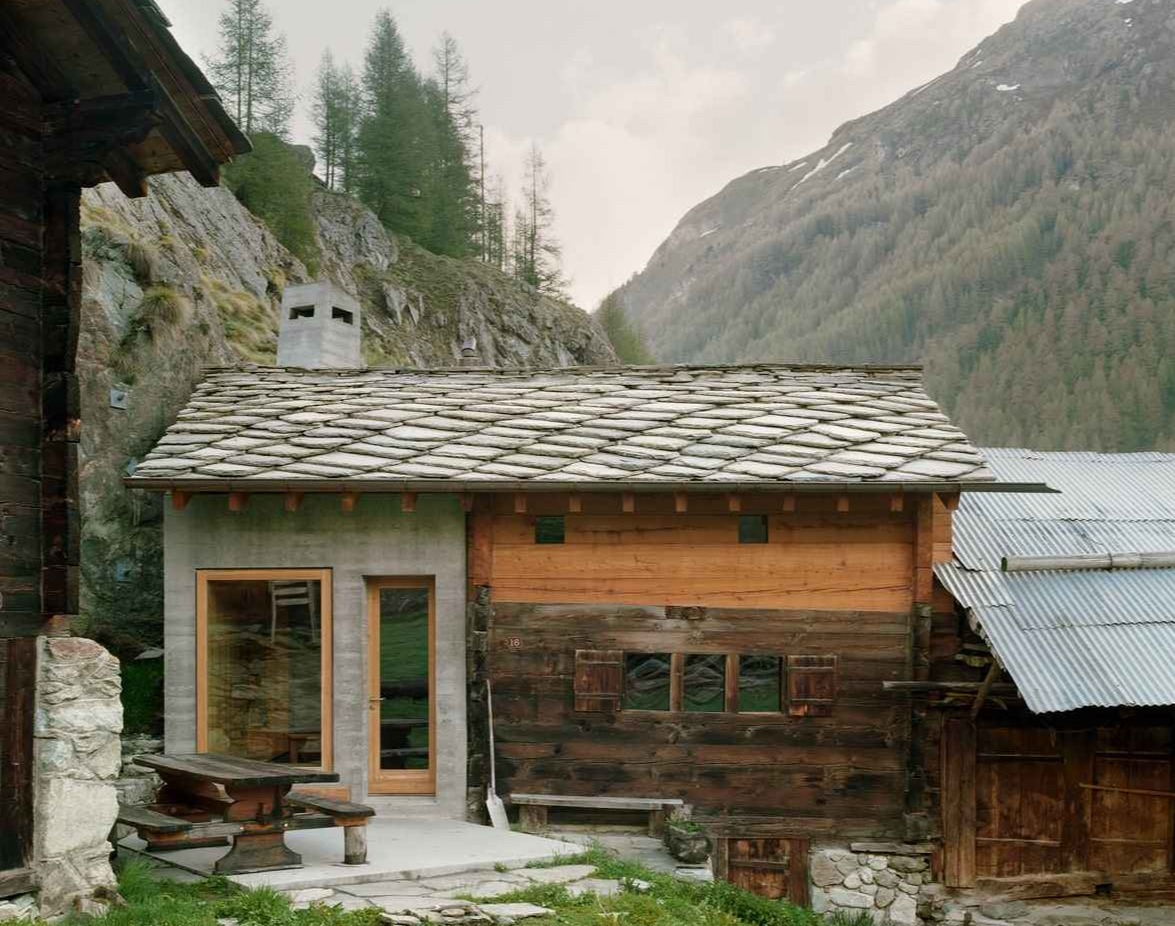 Położona u podnóża szwajcarskich gór, w pobliżu miejscowości Arolla, tradycyjna górska chata od początku swojego istnienia pełniła funkcję sezonowego schronienia. Jej pierwotny właściciel – rolnik wypasający krowy na wysokości 1850 m n.p.m. – mieszkał w niej przez kilka miesięcy w roku. Po latach budynek zyskał nowe życie dzięki renowacji przeprowadzonej przez pracownię Deschenaux Follonier Architectes, która czerpała inspirację z historii i lokalnych tradycji. Głównym celem projektu było zachowanie pierwotnego charakteru schroniska, a jednocześnie dostosowanie go do współczesnych standardów komfortu. Efekt końcowy to przykład, jak architektura może łączyć autentyczność z nowoczesnością – podobnie jak nowoczesna stodoła, która czerpie z wiejskich form, zachowując minimalistyczną elegancję.