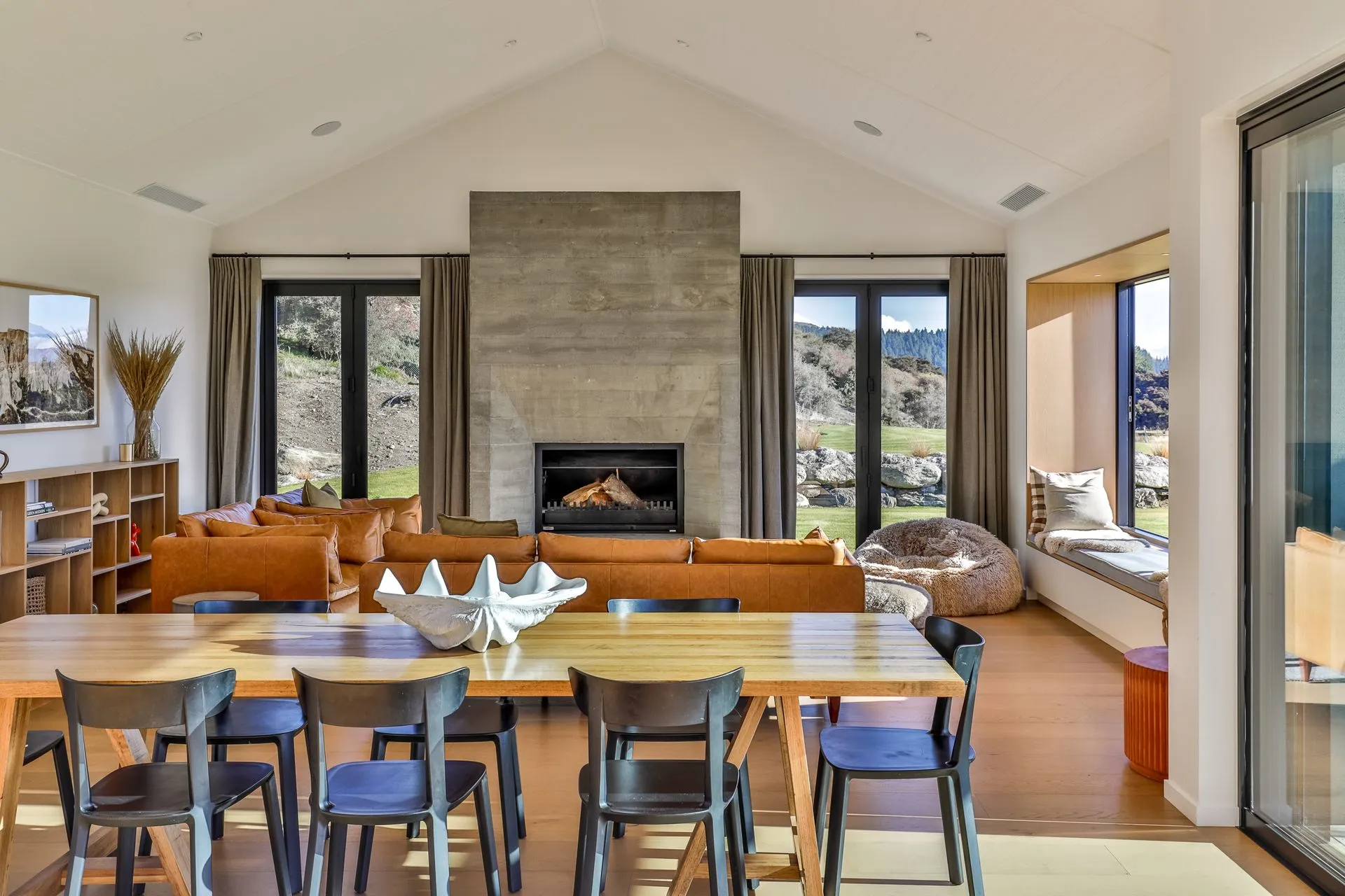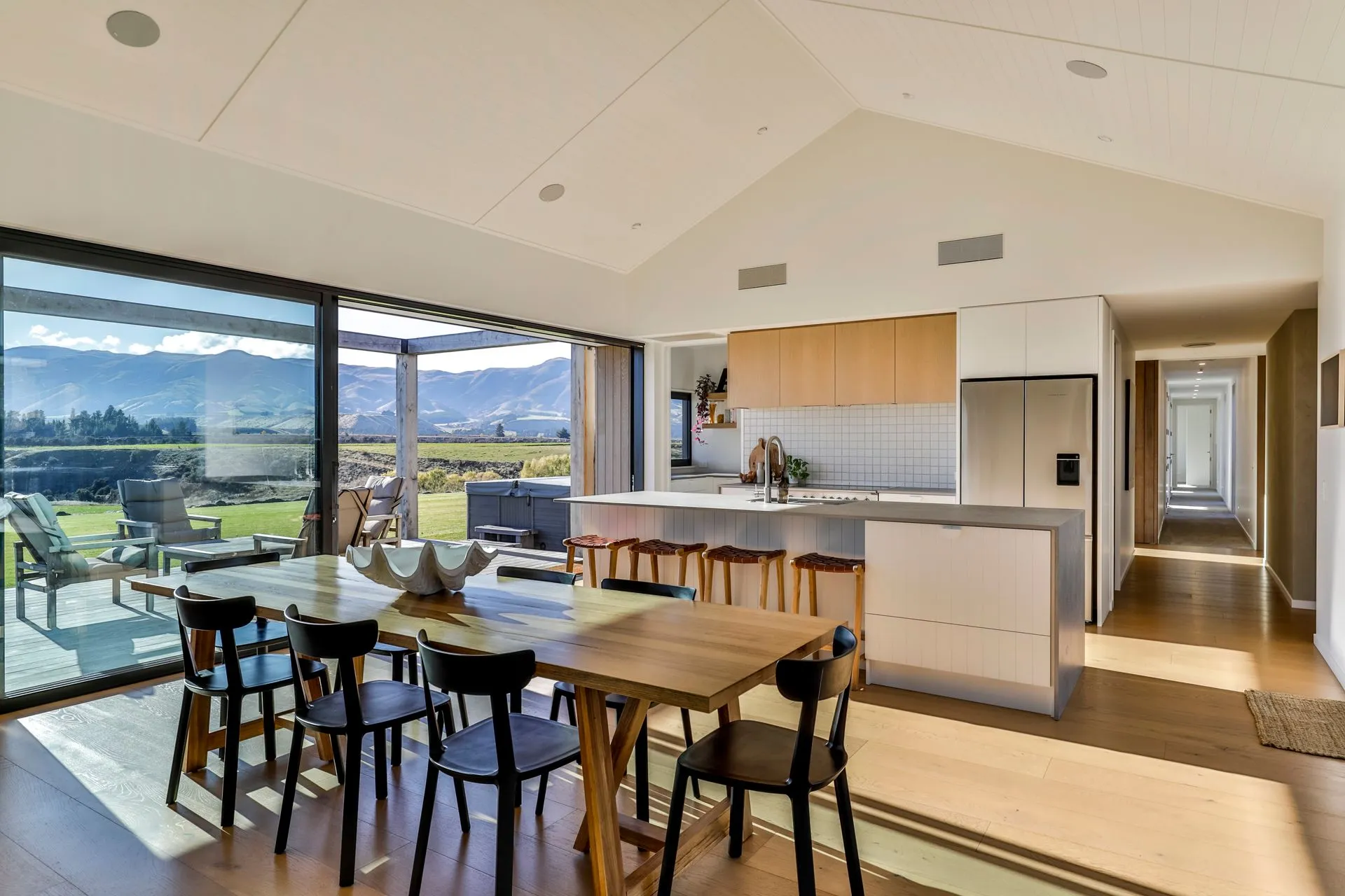 Zaprojektowany z myślą o maksymalnym doświetleniu, dom otwiera się na spektakularne widoki regionu Central Otago. Otwarta strefa dzienna płynnie łączy się z tarasem i ogrodem, tworząc naturalne przedłużenie przestrzeni życiowej. W części prywatnej mieści się skrzydło sypialniane, które wychwytuje południowe światło, zapewniając spokój i prywatność.