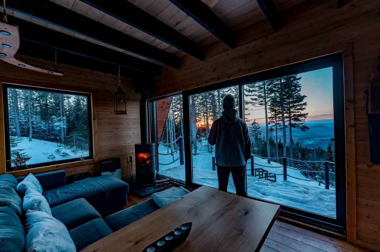 La cAbin to niezwykły domek typu A-frame, inspirowany estetyką nowoczesnej stodoły, położony na szczycie jednej z najwyższych gór Lac-Beauport. Oferuje zachwycające, panoramiczne widoki oraz pełen komfort o każdej porze roku. Dzięki kominkowi, grzejnikom gazowym, panelom solarnym i fotowoltaice domek jest całoroczny i w pełni samowystarczalny energetycznie, zapewniając ciepło, wygodę i bliskość natury.