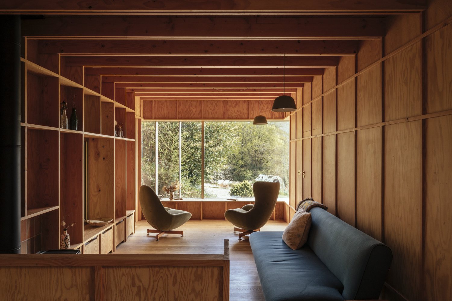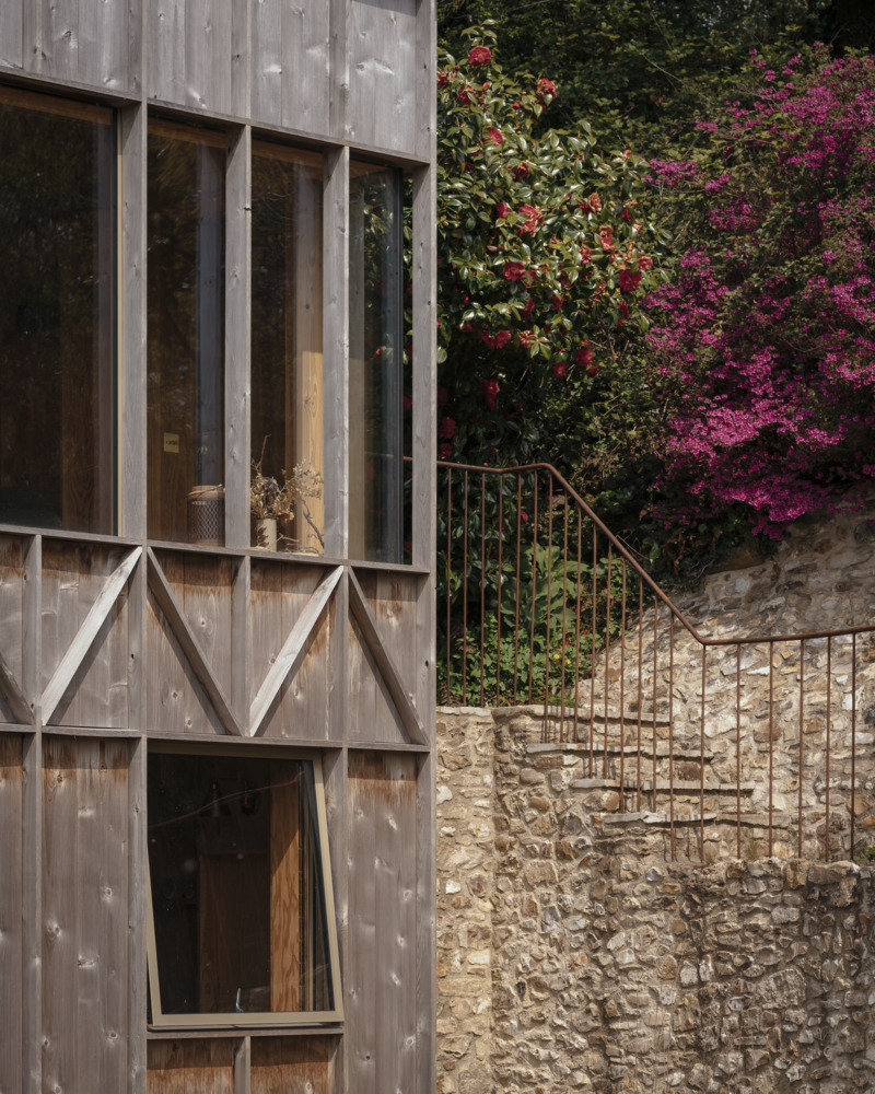 Zleceniodawcy, pasjonaci muzyki i sztuki, zlecili Studio Weave zaprojektowanie dobudówki, która miałaby pełnić funkcję przestrzeni do mieszkania, oddzielonej od głównego budynku. Nowa część projektu doskonale wkomponowuje się w wiejski krajobraz, jednocześnie przyjmując nowoczesną estetykę. Dobudówka została zaprojektowana jako sześcienny, dwupiętrowy budynek z geometryczną drewnianą fasadą i dużymi przeszklonymi oknami, zapewniającymi mnóstwo naturalnego światła.