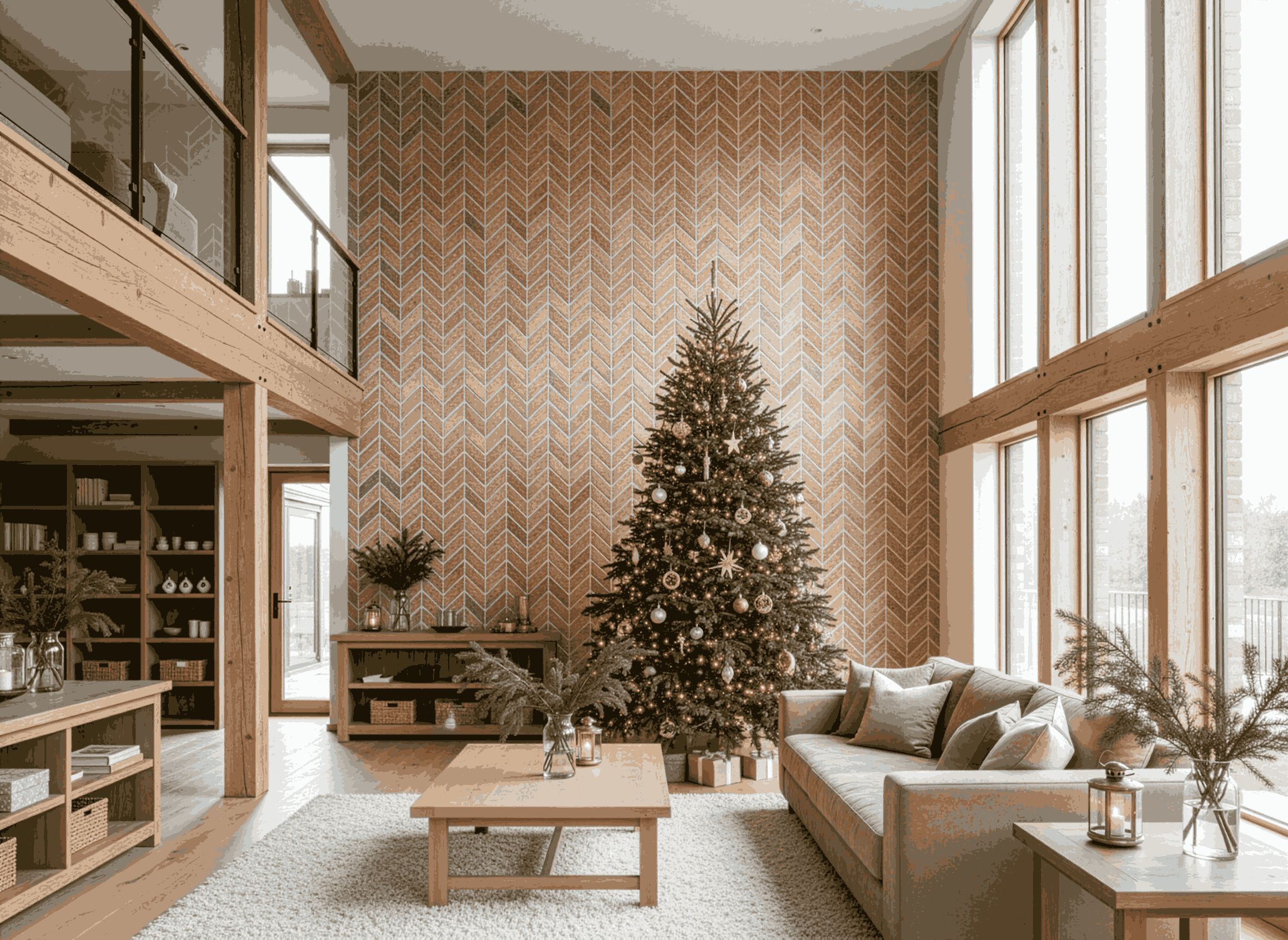 Świąteczny salon z płytkami z cegły „Jodła Chevron"