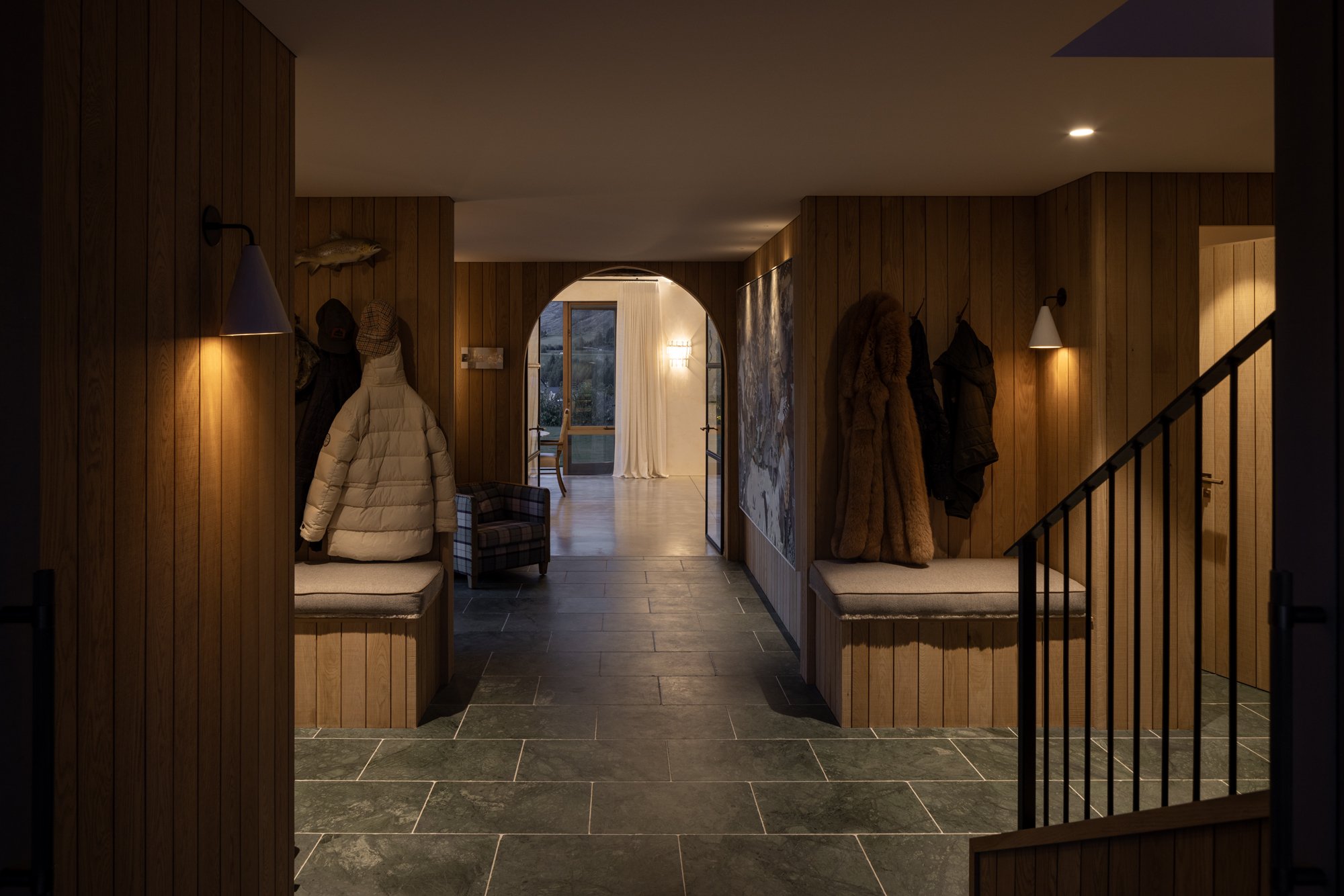 Schistowa elewacja „Cottage” nawiązuje do lokalnej architektury agrarnej. Jednopoziomowy pawilon w kształcie dwuspadu mieści otwartą kuchnię, jadalnię i salon. Wnętrza charakteryzują się minimalistycznym stylem, tynkowanymi ścianami, betonowymi podłogami, kominkiem z kamienia schistowego oraz wysokimi, skośnymi sufitami.