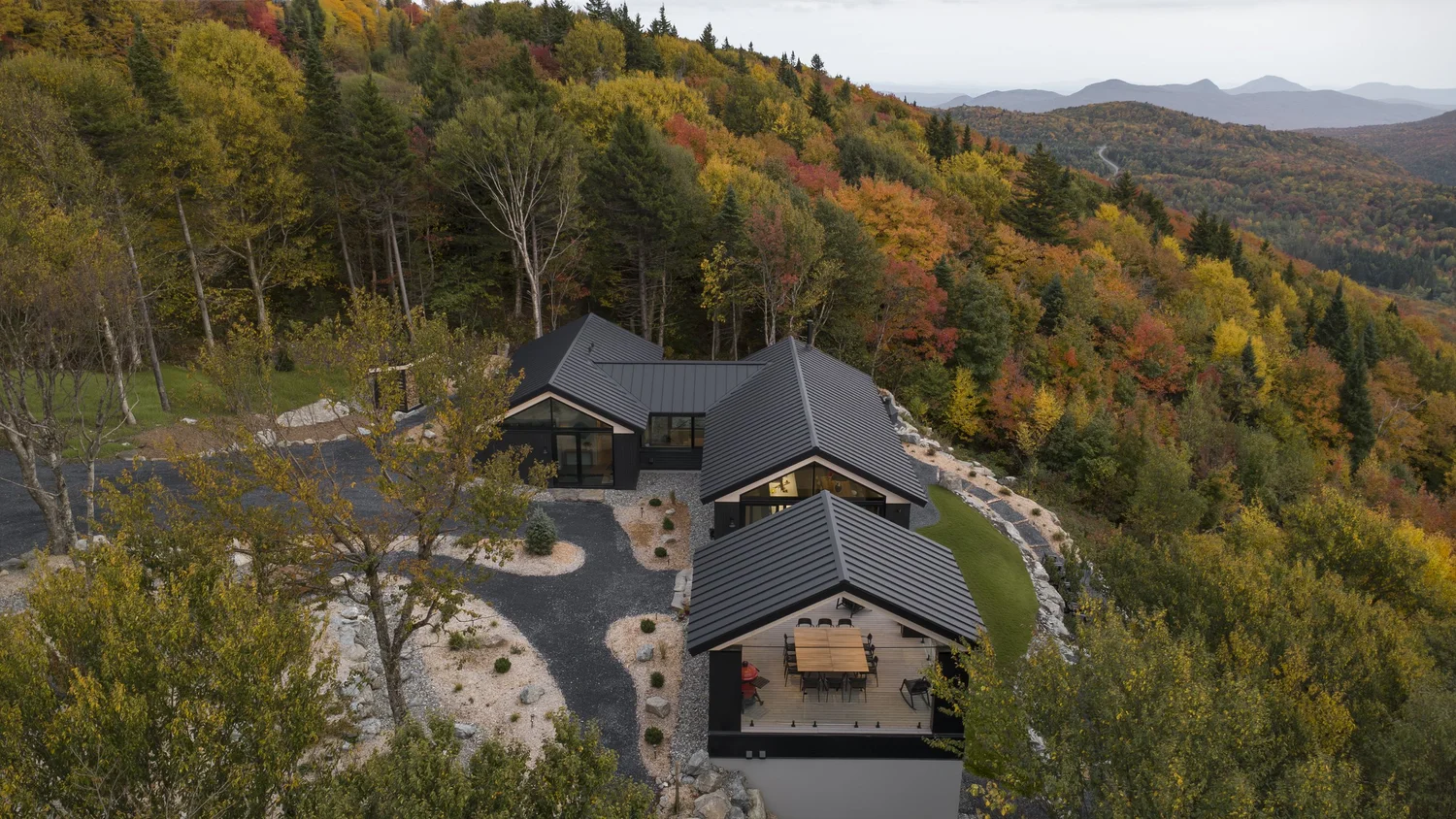 Maison MONT-FOSTER w Bolton-Ouest to dom wakacyjny zaprojektowany z myślą o życiu blisko natury i o wspólnym spędzaniu czasu w rodzinnym gronie. Położony w leśno-górskim krajobrazie Quebecu, powstał jako spełnienie wieloletniego marzenia inwestorów o miejscu, które będzie jednocześnie schronieniem, przestrzenią spotkań i trwałą architekturą wpisaną w otoczenie. Projekt studia Natalie Dionne Architecture od początku rozwijany był w ścisłej współpracy z właścicielami, dzięki czemu dom zyskał bardzo osobisty, a zarazem ponadczasowy charakter.