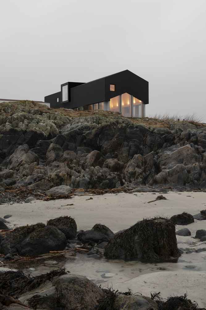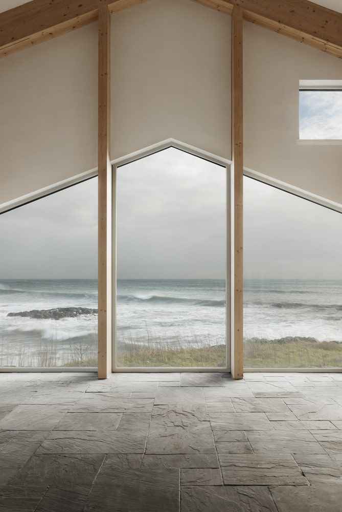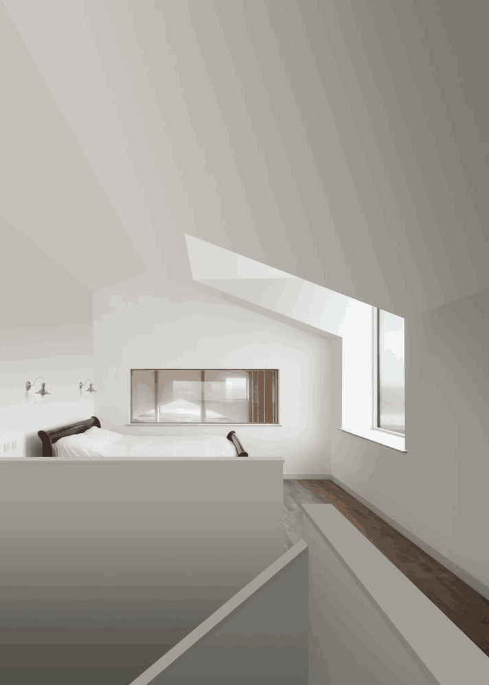 Układ Mannal House opiera się na dwóch skrzydłach – mieszkalnym i sypialnianym – tworząc prostą bryłę z dwoma szczytami, charakterystyczną dla tradycyjnego budownictwa wiejskiego. W pierwszym skrzydle znalazła się strefa dzienna: kuchnia, jadalnia i salon, a także główny apartament z gabinetem, garderobą i łazienką na piętrze. To część domu otwarta na ogród oraz morze – architekci poszerzyli istniejącą bryłę i zastosowali duże tafle szkła, by maksymalnie wykorzystać nadmorskie widoki. Drugie skrzydło, usytuowane pod kątem prostym, mieści trzy sypialnie i dwie łazienki z oknami wychodzącymi na wschód, co pozwala mieszkańcom podziwiać wschody słońca nad morzem. Subtelnie zaokrąglone sufity dodają lekkości i kontrastują z niskim zewnętrznym dachem.