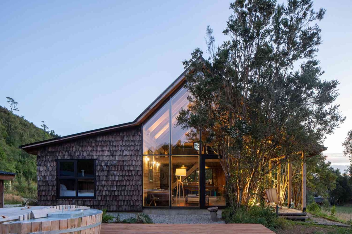 Maullin Lodge to niezwykły dom położony w wiejskiej okolicy południowego Chile. Budynek o powierzchni 120 m² zaprojektowano z myślą o prostocie, funkcjonalności i harmonii z otoczeniem. Architekci stworzyli przestrzeń z dwiema sypialniami, dwiema łazienkami oraz dużą strefą wspólną, inspirowaną tradycyjnymi chilijskimi zabudowaniami. Celem projektu było zachowanie ducha lokalnej architektury, przy jednoczesnym nadaniu jej współczesnego charakteru. Efektem jest nowoczesna stodoła – budynek, który łączy tradycyjną formę z minimalistycznymi rozwiązaniami i nowoczesnym podejściem do przestrzeni.