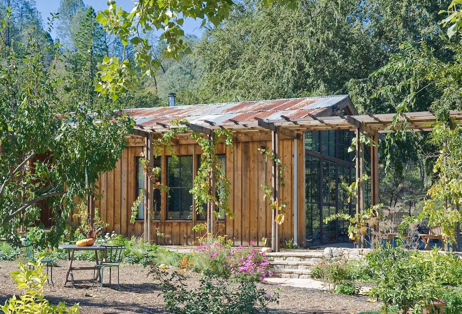 Dom z sekwoi wśród kalifornijskich wzgórz