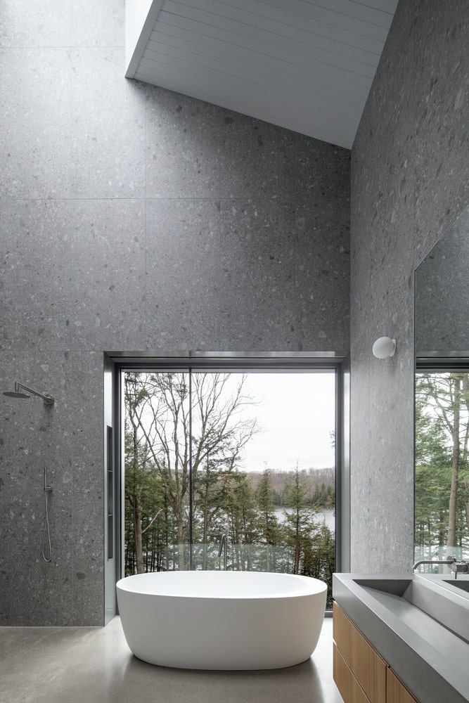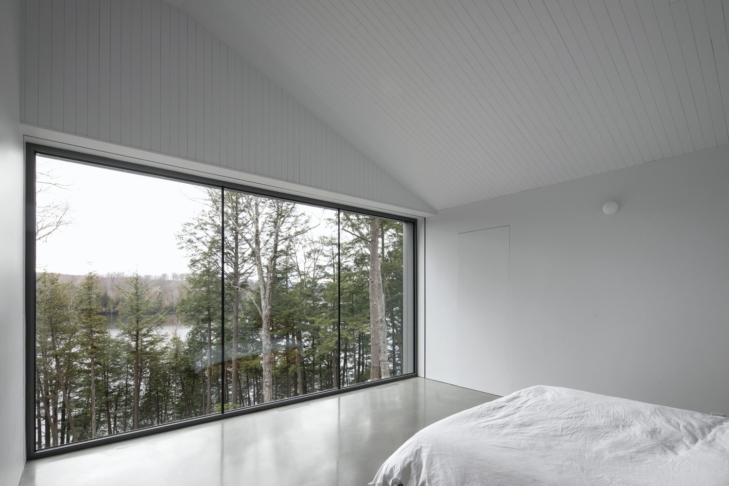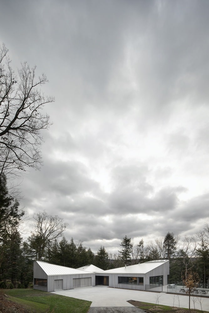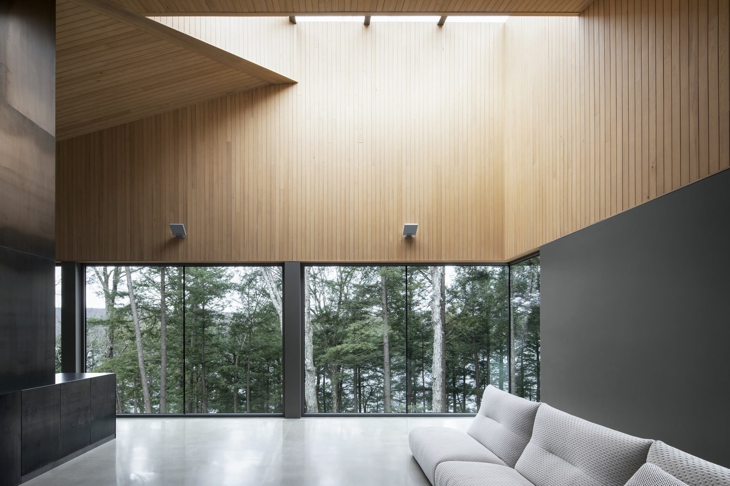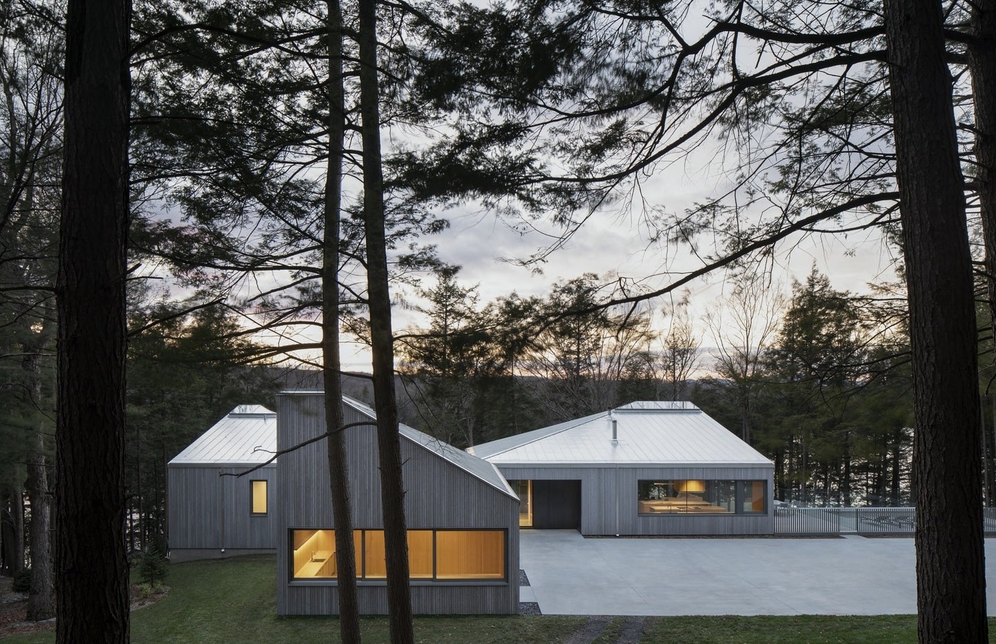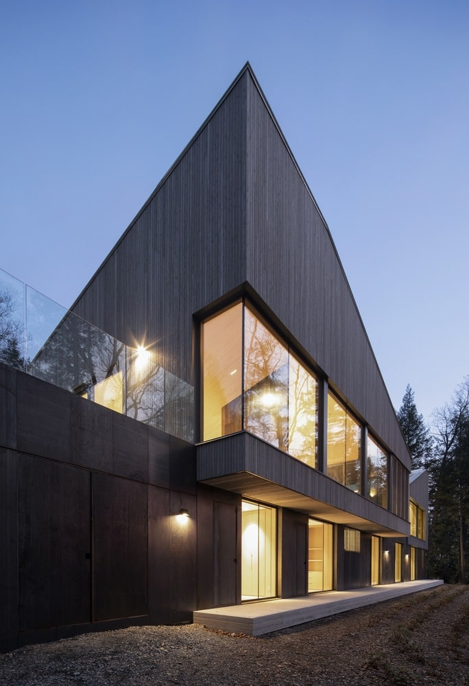 Memphremagog House to wyjątkowy dom zlokalizowany na stromej, zalesionej działce z widokiem na jezioro Memphremagog w Kanadzie. Projekt autorstwa lokalnego studia inspirowany był formami sakralnymi i otaczającą przyrodą. Składający się z trzech brył przykrytych ukośnymi dachami dom, wyróżnia się rzeźbiarską geometrią, świetlikami dachowymi i minimalistyczną elewacją wykonaną z postarzanego drewna i stali nierdzewnej. Dzięki temu całość doskonale wpisuje się w naturalny krajobraz, tworząc efekt lewitującej konstrukcji nad wodą.