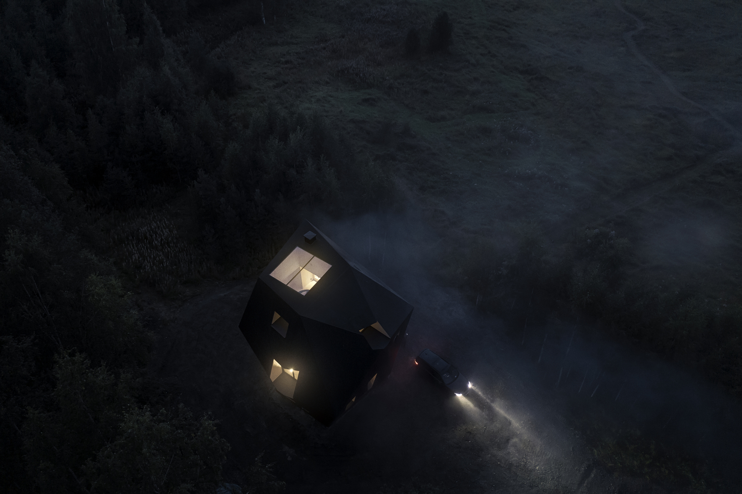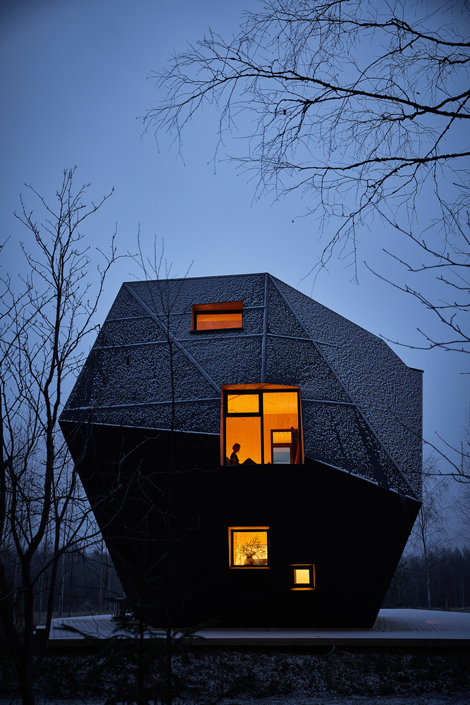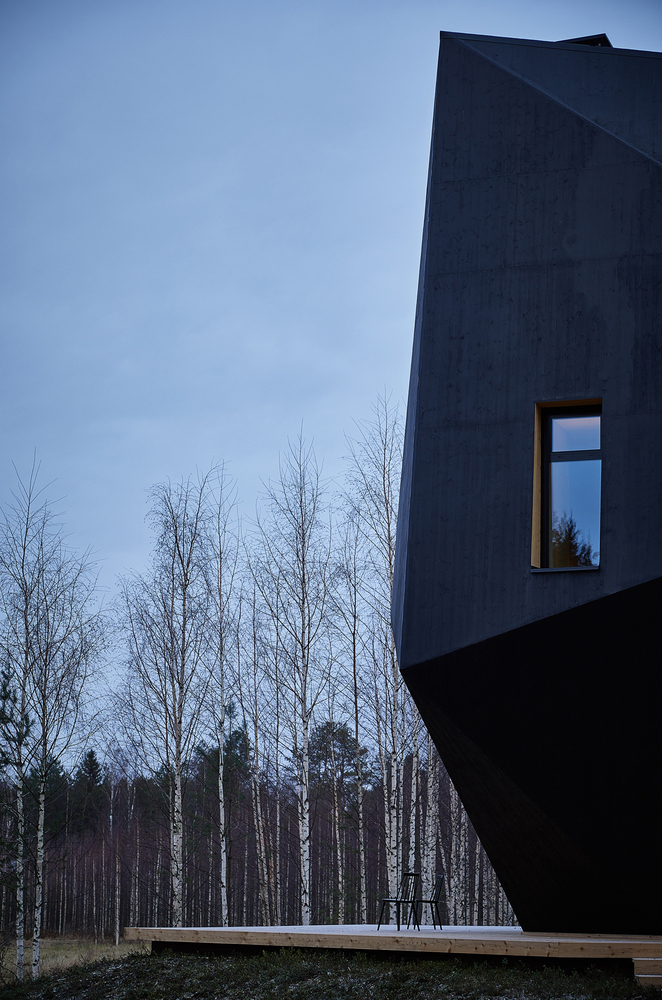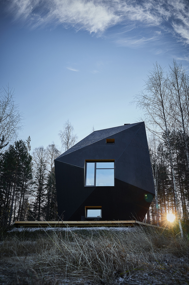 Meteorite, zaprojektowany przez Ateljé Sotamaa, to wyjątkowy budynek mieszkalny zlokalizowany w Kontiolahti, wschodniej Finlandii. Usytuowany pośród lasów, wydaje się mistycznym, ciemnym obiektem wśród drzew, szczególnie gdy podchodzi się do niego pieszo, co preferuje sam architekt. Wewnątrz tego ultranowoczesnego, ekologicznego budynku z drewna o trzech kondygnacjach otwiera się zupełnie inny świat – przestrzeń pełna połączonych, otwartych pomieszczeń zintegrowanych z otaczającym krajobrazem.