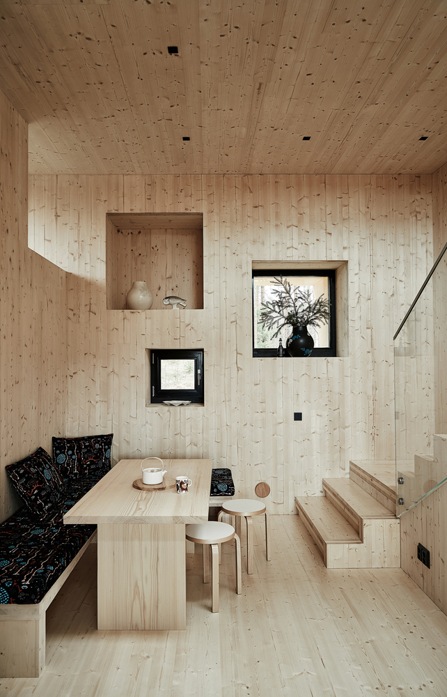 „Meteorite to niewielki dom, ale wewnątrz reprezentuje zupełnie nowy, trójwymiarowy otwarty koncept organizacji przestrzeni życiowej” – mówi Kivi Sotamaa, współzałożyciel Ateljé Sotamaa. W przeciwieństwie do tradycyjnych domów, gdzie każda przestrzeń ma określoną funkcję, architektura Meteorite wspiera dynamiczne relacje mieszkańców i różnorodne sytuacje życiowe. Cyfrowy projekt i zaawansowane technologie prefabrykacji umożliwiły stworzenie unikalnego, estetycznego i ekologicznego budynku drewnianego o wyjątkowej wartości doświadczeniowej.