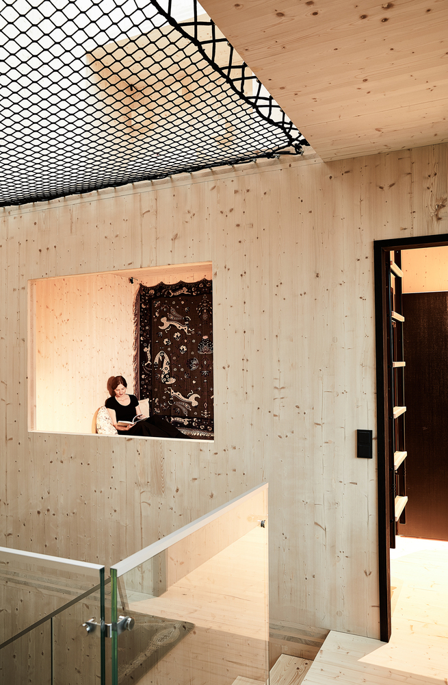 „Ten projekt był wyjątkowy również pod względem konstrukcyjnym” – mówi Ahti Rantonen z grupy Vahanen. Dzięki cyfrowemu projektowi wszystkie części domu mogły zostać prefabrykowane, a następnie zmontowane na miejscu. Ta precyzyjna technologia umożliwia szybki montaż i eliminuje potrzebę stosowania sztucznych materiałów, tworząc zdrową przestrzeń mieszkalną o doświadczeniu zbliżonym do tradycyjnego domu z bali.
