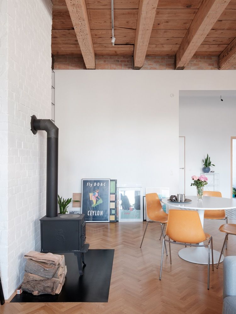 Otwarta przestrzeń idealnie odpowiada obecnym potrzebom, ale układ można łatwo zmienić w przyszłości, tworząc mieszkanie z trzema pokojami. To przykład, jak nowoczesna stodoła może łączyć historię i współczesny design w jednej przestrzeni.