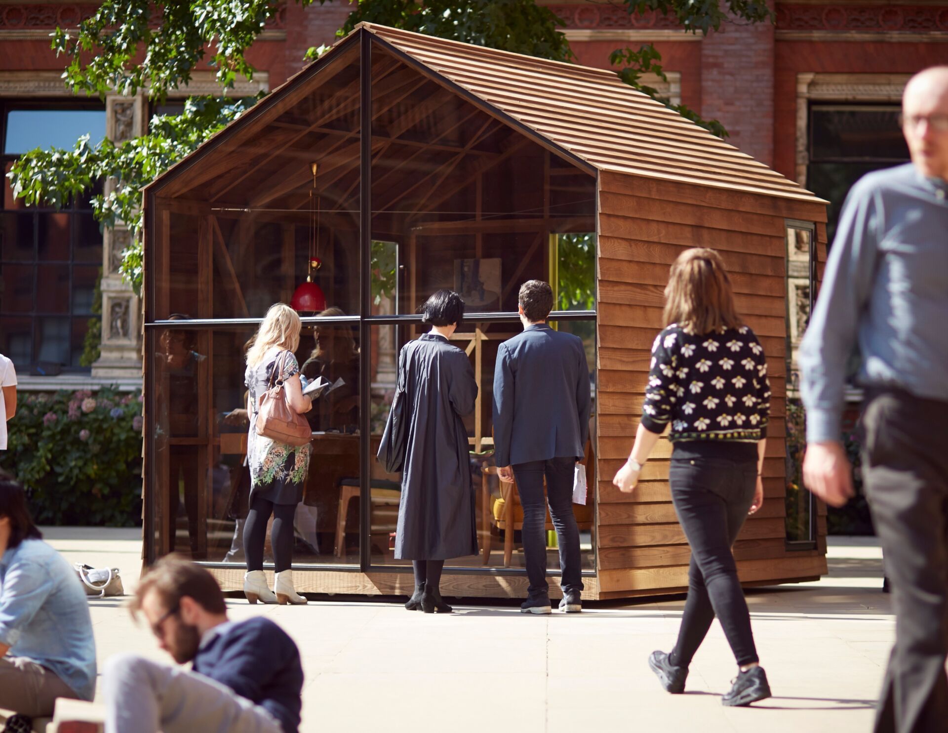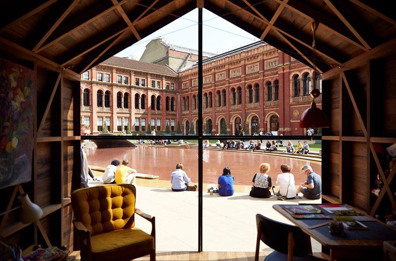Jego powierzchnia to kwadrat o boku długości 10 stóp – dokładnie tyle samo co pierwszy sklep projektanta w Nottingham. Wnętrze jest umeblowane w sposób bardzo prosty – stoją tam dwa krzesła i biurko, a z sufitu zwisa lampa.