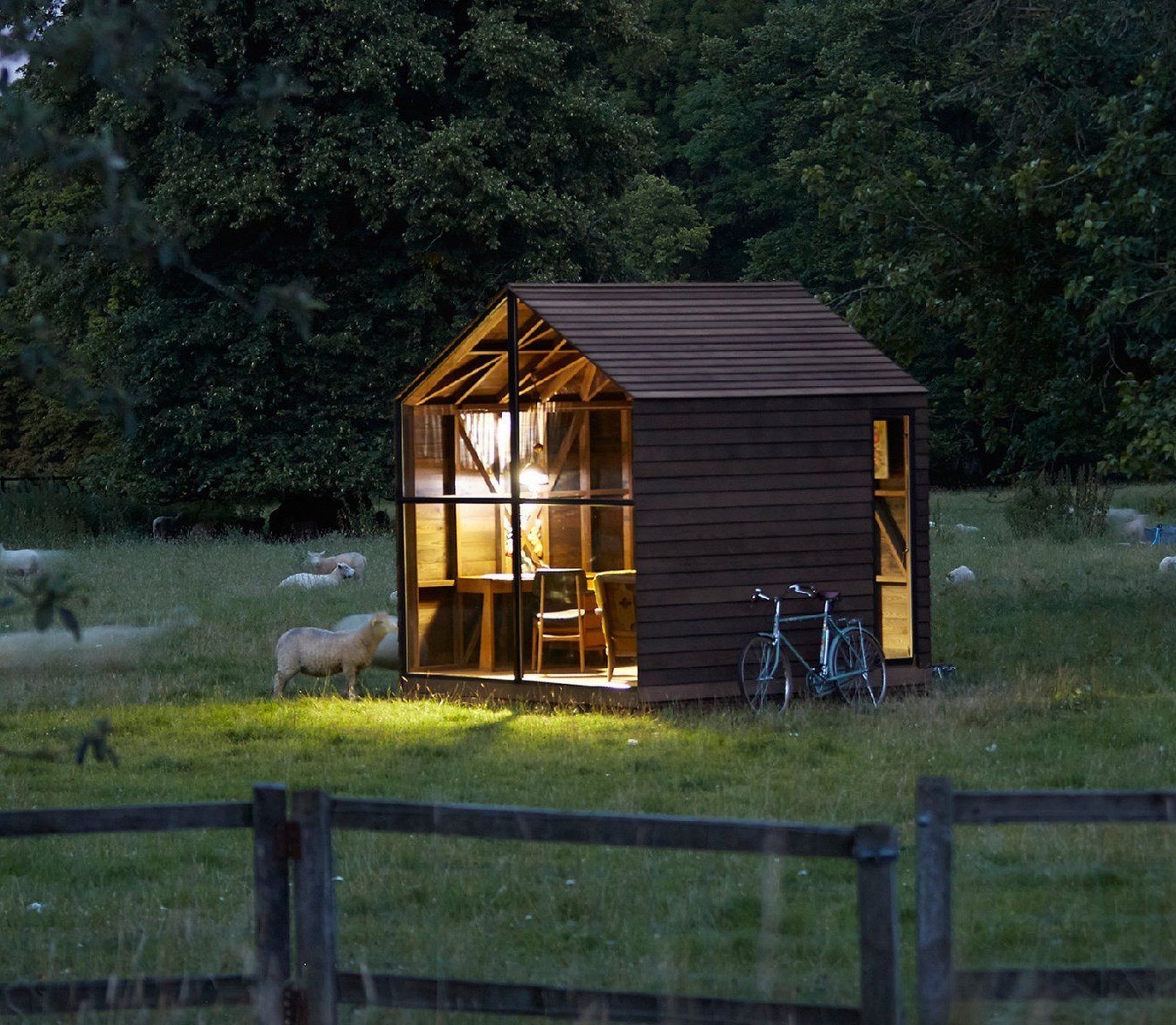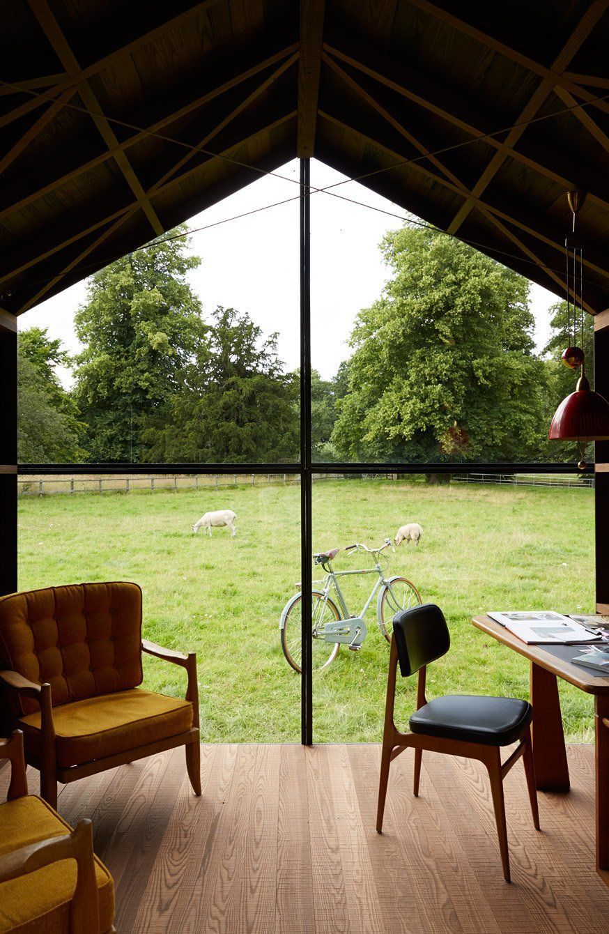 Ta niewielka nowoczesna stodoła została zaprojektowana i zbudowana przez londyńską producentkę mebli Nathalie de Leval, na zlecenie projektanta mody Paula Smitha. Budynek jest niezwykły nie tylko ze względu na wyjątkową jakość wykończenia, ale także dlatego, że może obracać się zmieniając swoją pozycję wraz z ruchem słońca.